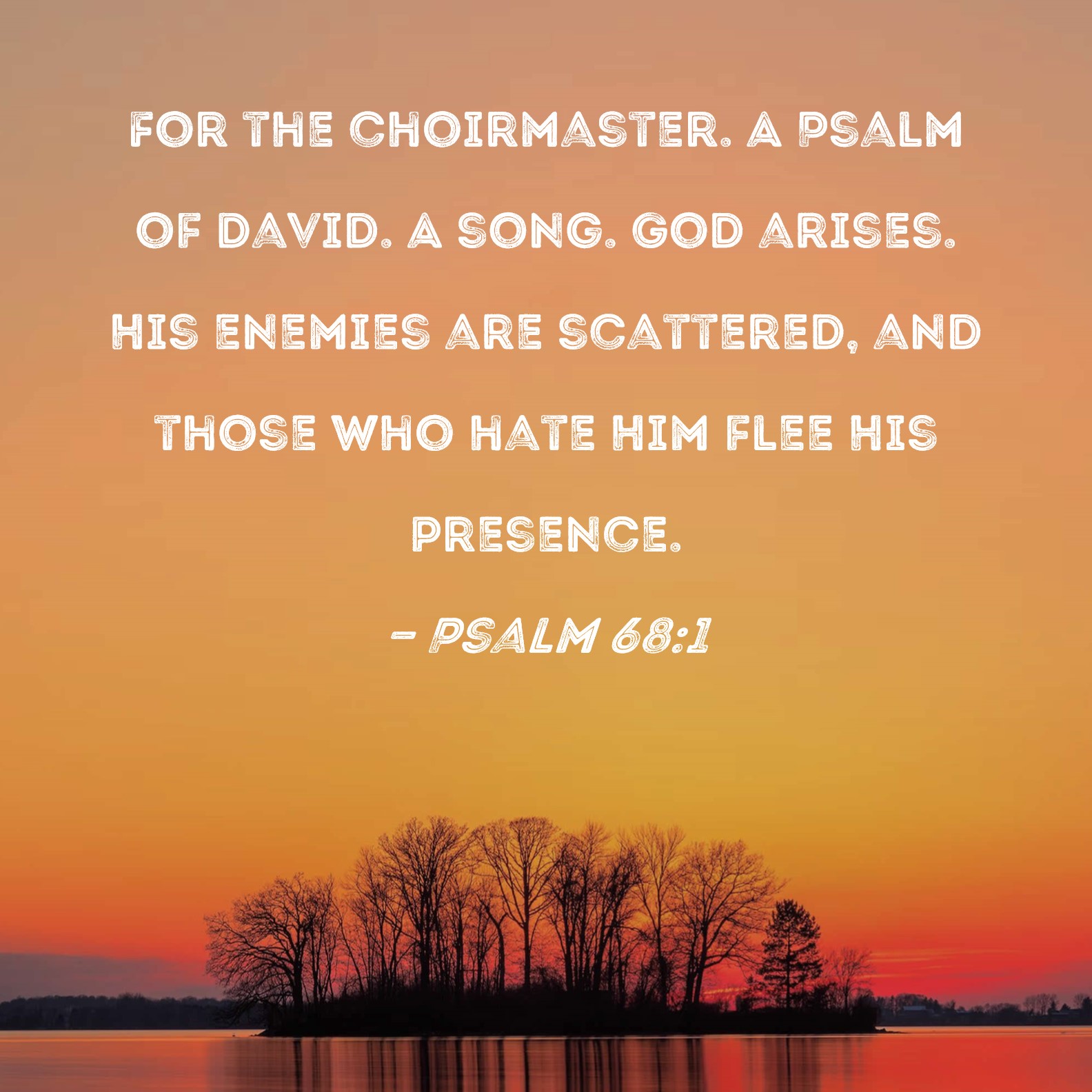Psalm 68:1 For the choirmaster. A Psalm of David. A song. God arises. His enemies are scattered, and those who hate Him flee His presence.