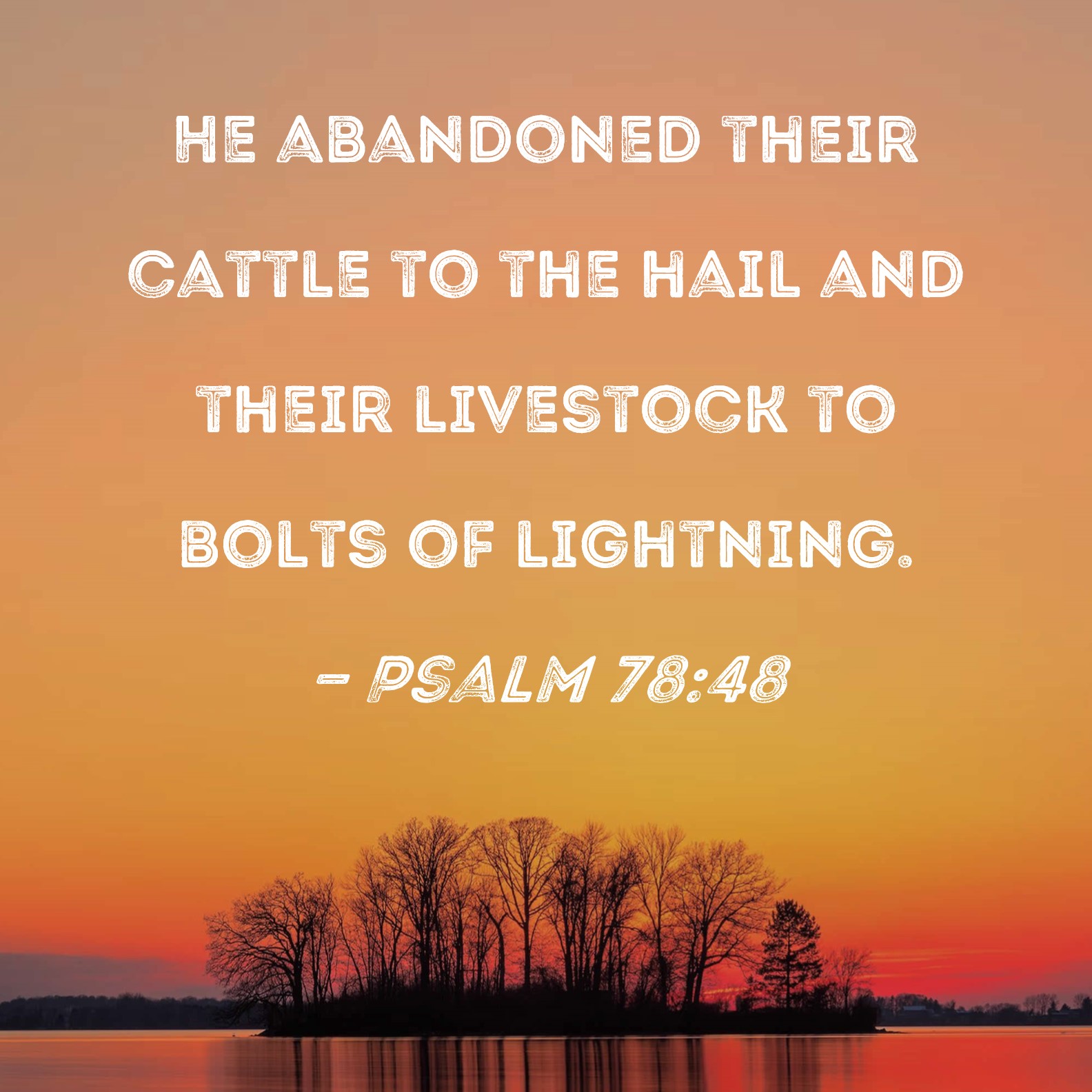 Psalm 78:48 He abandoned their cattle to the hail and their livestock to bolts of lightning.