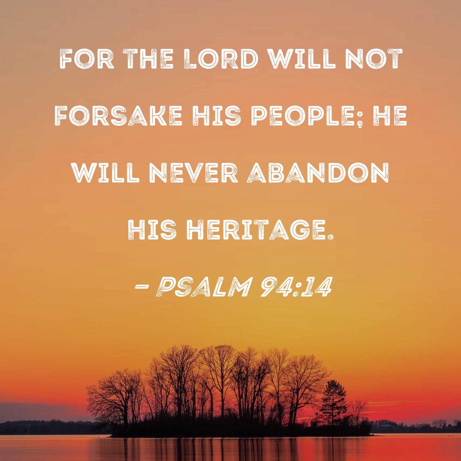 Psalm 94:14 For the LORD will not forsake His people; He will never abandon His heritage.