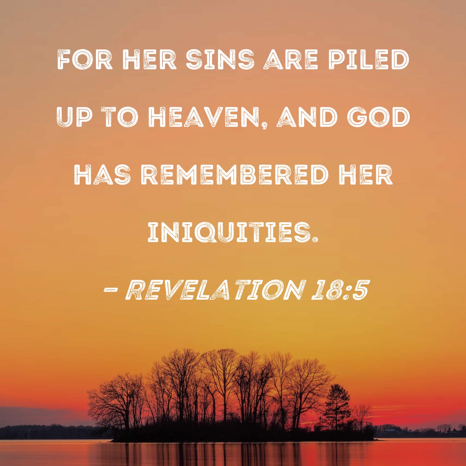 Revelation 18:5 For her sins are piled up to heaven, and God has remembered her iniquities.