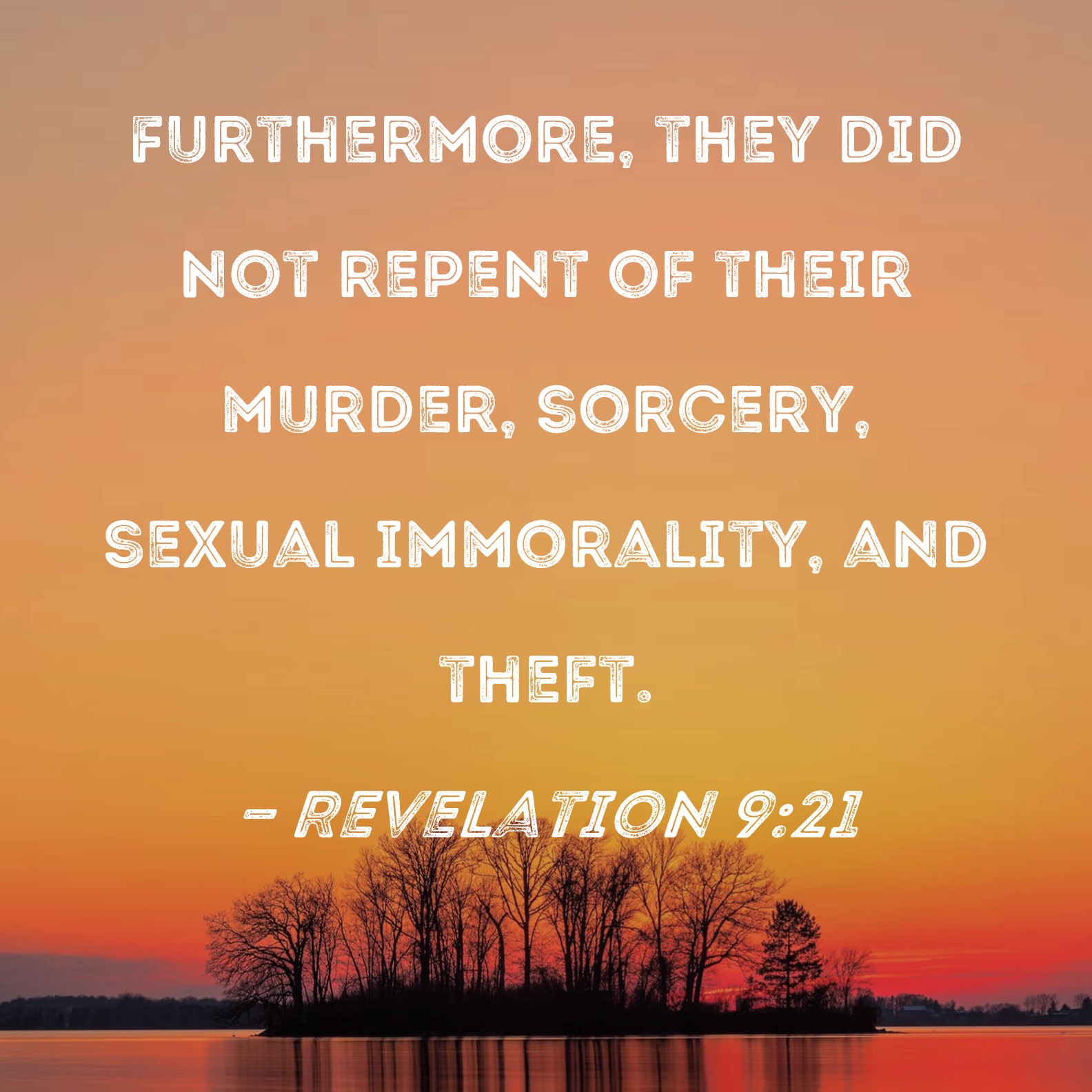Revelation 9:21 Furthermore, they did not repent of their murder, sorcery, sexual immorality, and theft.