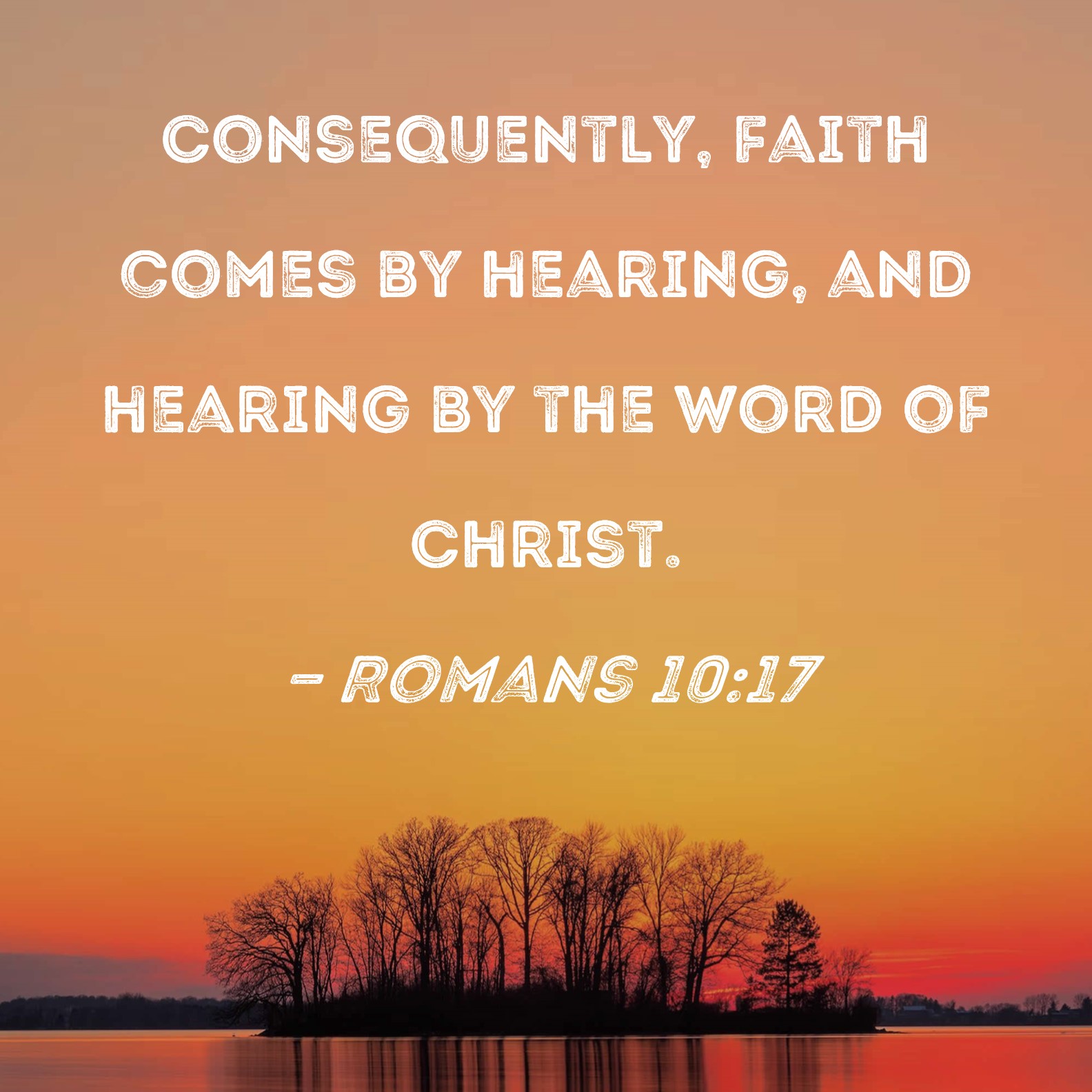 Romans 10:17 Consequently, faith comes by hearing, and hearing by the word of Christ.