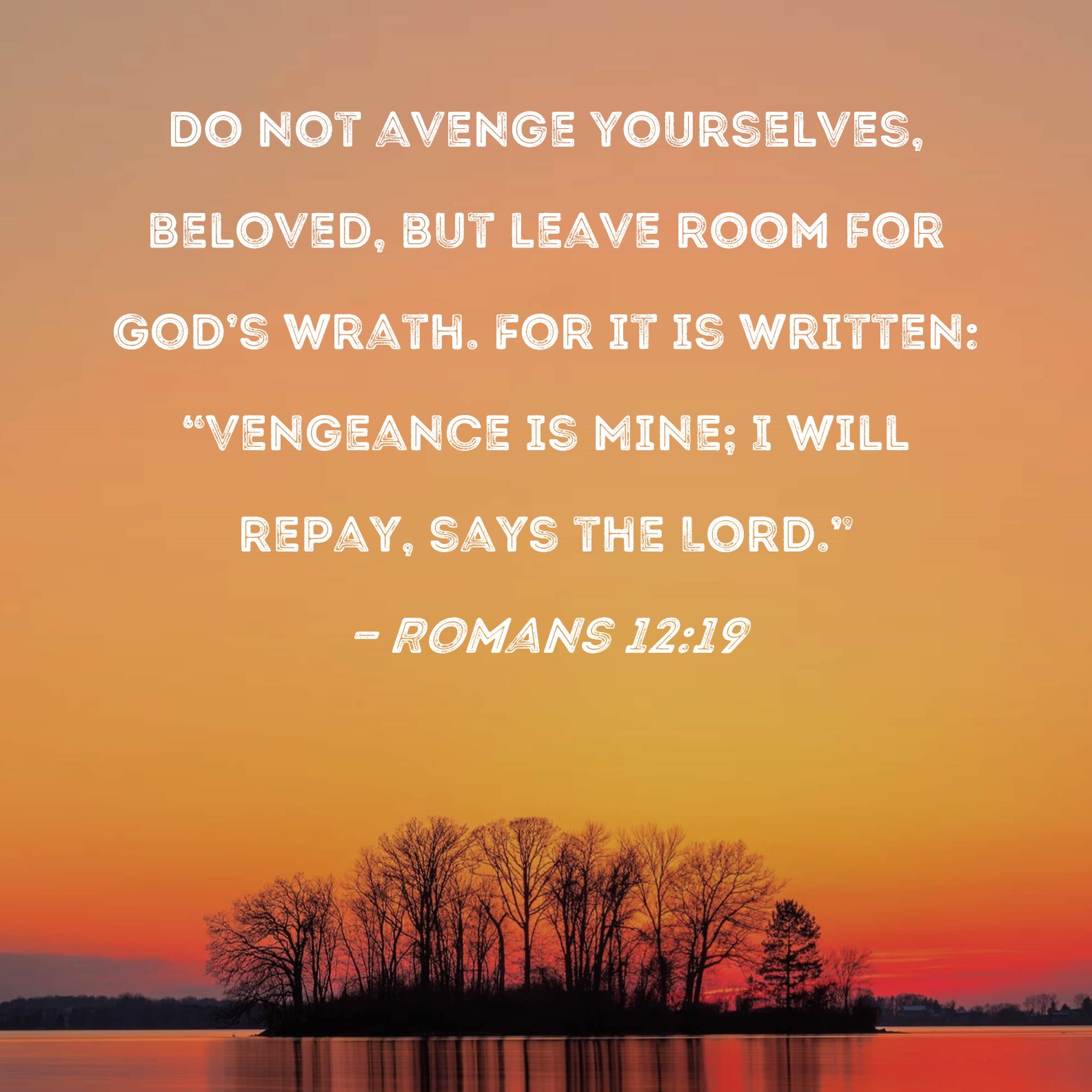 Romans 12:19 Do not avenge yourselves, beloved, but leave room for God's wrath. For it is written: "Vengeance is Mine; I will repay, says the Lord."