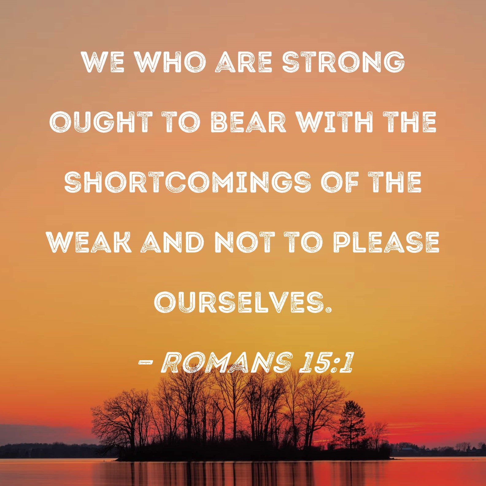 Romans 15:1 We who are strong ought to bear with the shortcomings of the weak and not to please ourselves.
