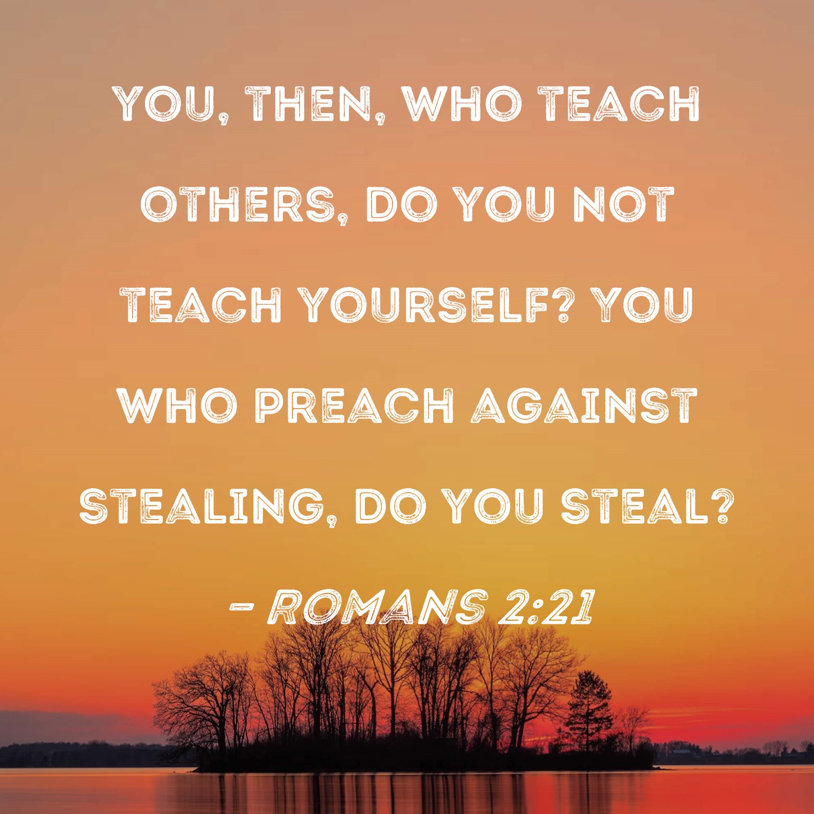 Romans 2:21 you, then, who teach others, do you not teach yourself? You who preach against stealing, do you steal?