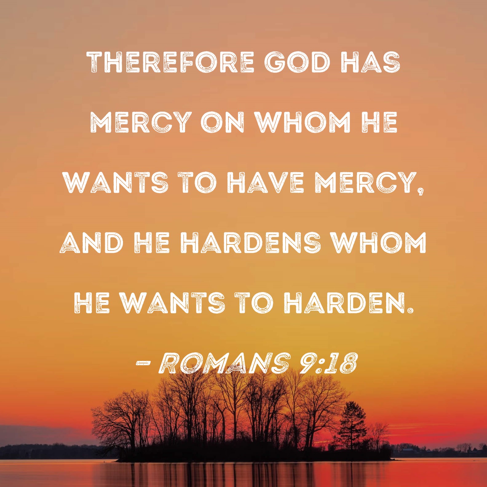 Romans 9:18 Therefore God has mercy on whom He wants to have mercy, and He hardens whom He wants to harden.