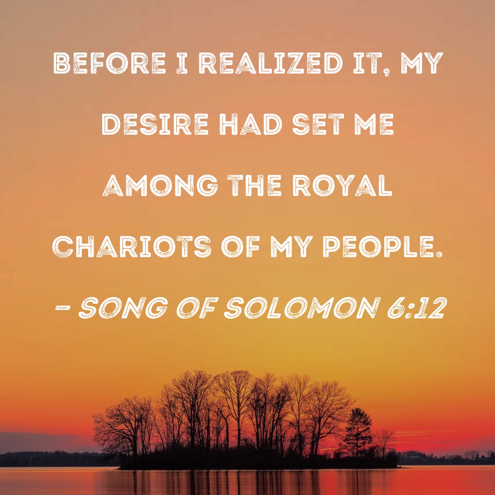 Song of Solomon 6:12 Before I realized it, my desire had set me among the royal chariots of my people.