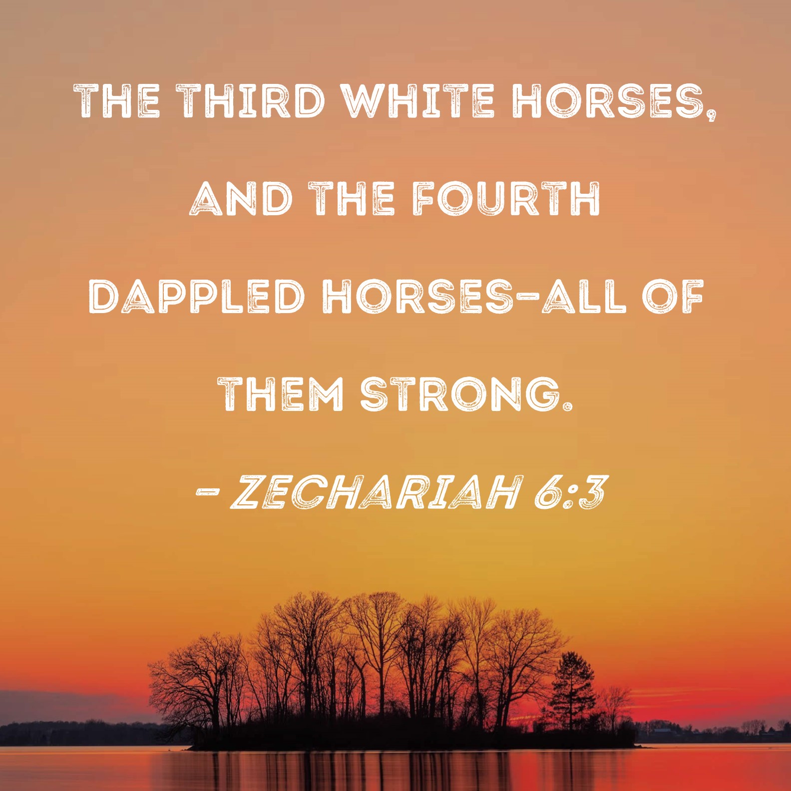 Zechariah 6:3 the third white horses, and the fourth dappled horses--all of them strong.