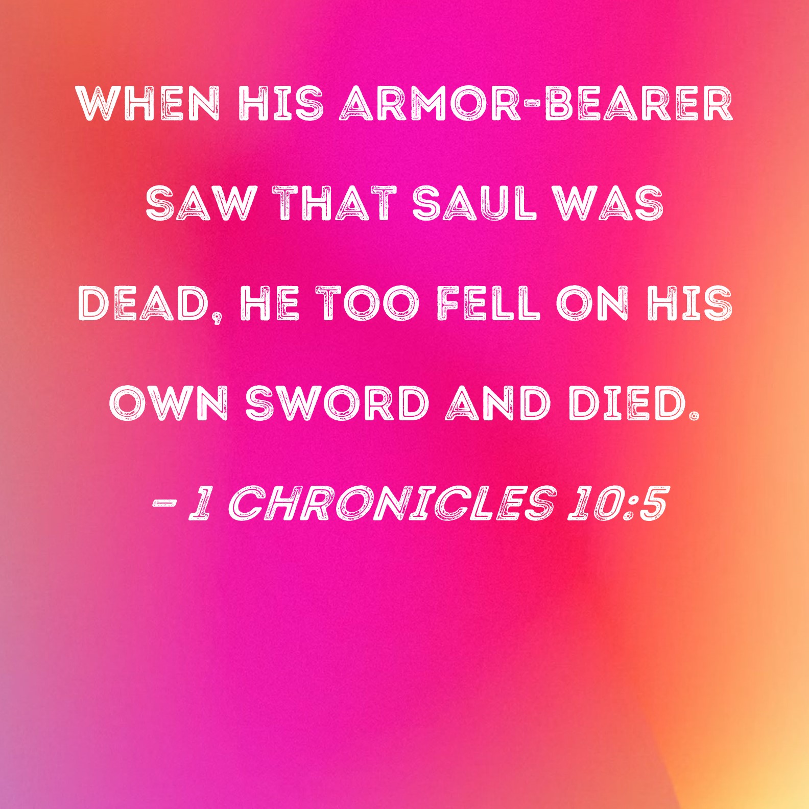 1 Chronicles 10:5 When his armor-bearer saw that Saul was dead, he too fell on his own sword and died.
