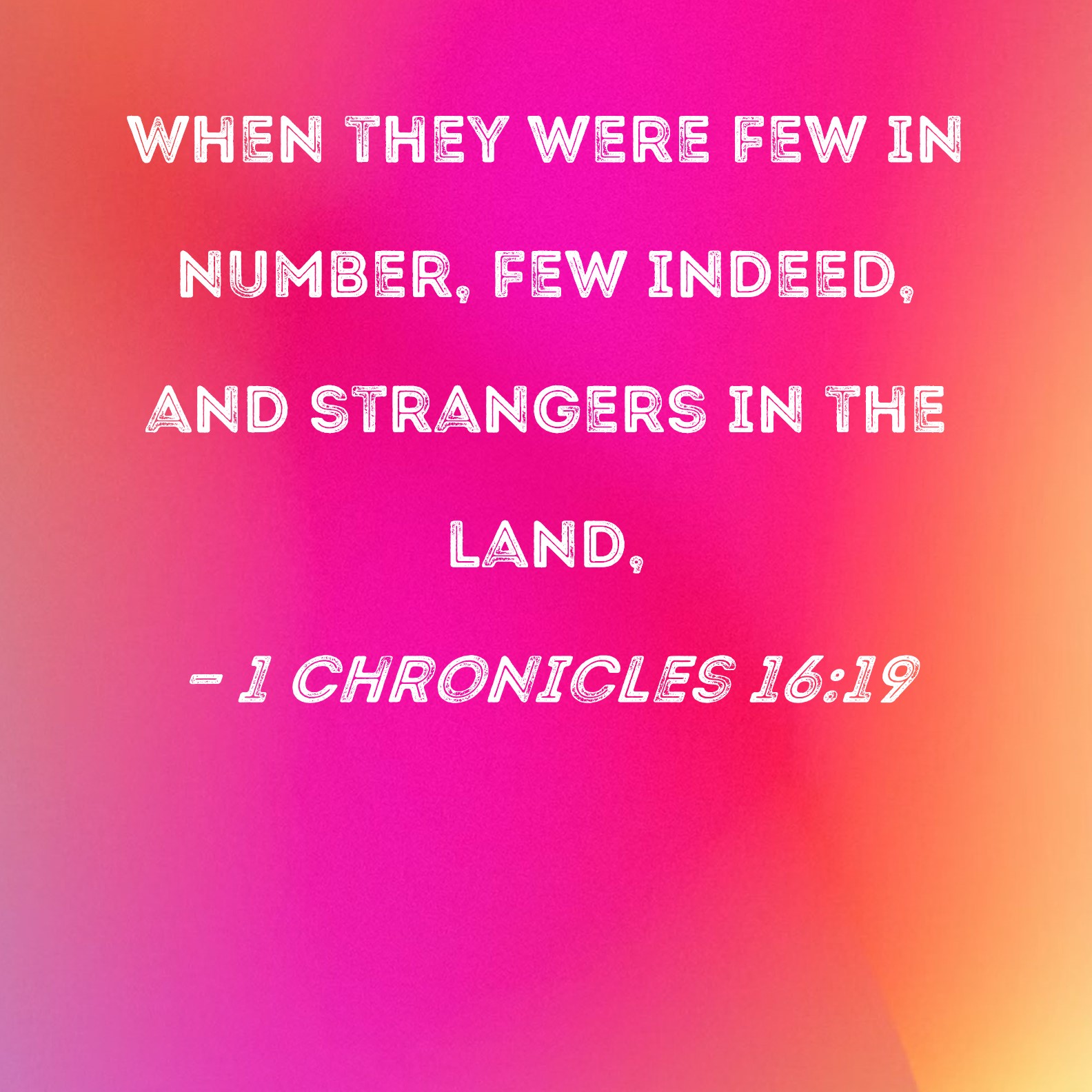 1 Chronicles 16:19 When they were few in number, few indeed, and strangers in the land,