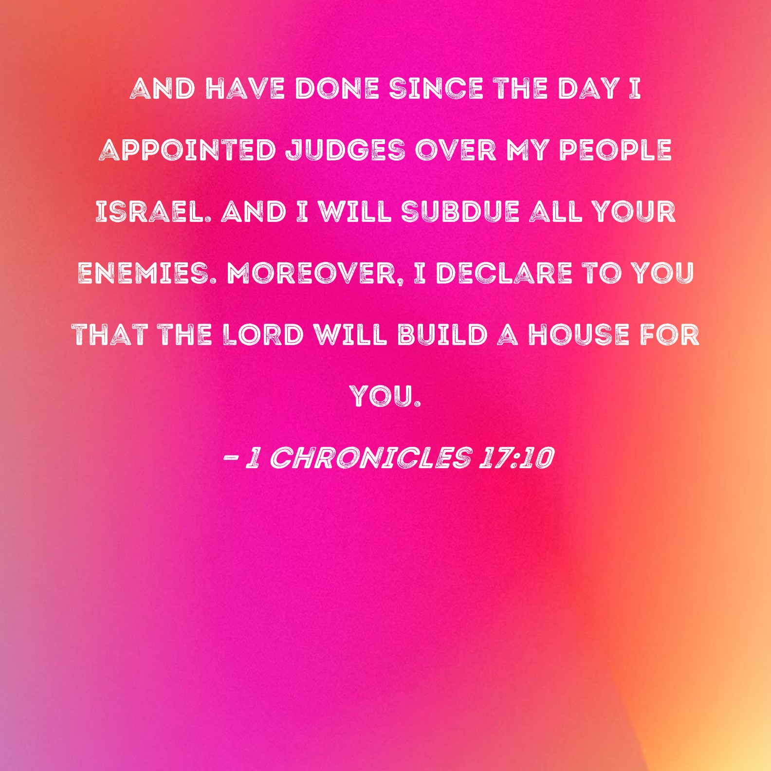 1 Chronicles 17:10 and have done since the day I appointed judges over My people Israel. And I will subdue all your enemies. Moreover, I declare to you that the LORD will build a house for you.