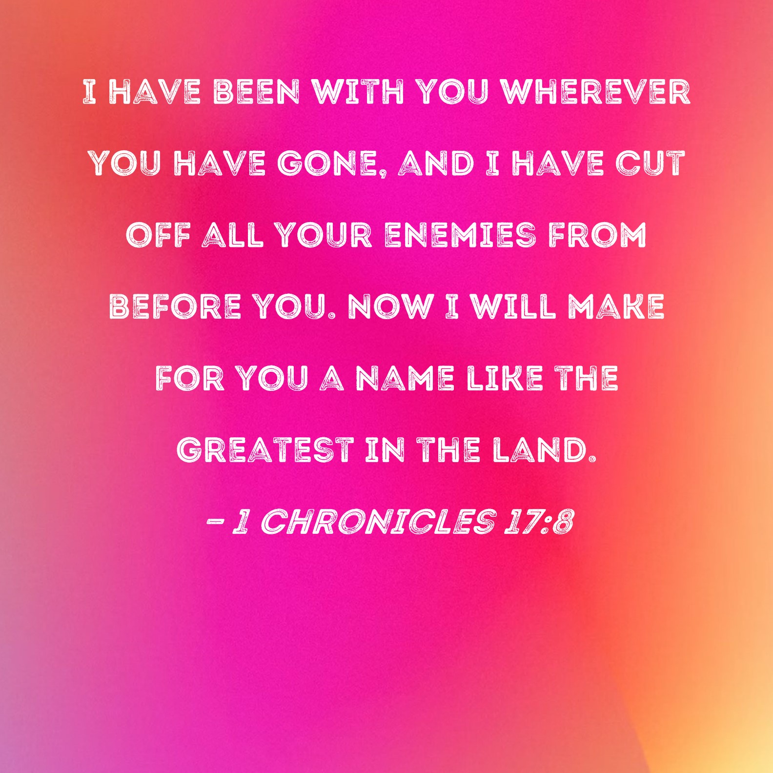 1 Chronicles 17:8 I have been with you wherever you have gone, and I have cut off all your enemies from before you. Now I will make for you a name like the greatest in the land.