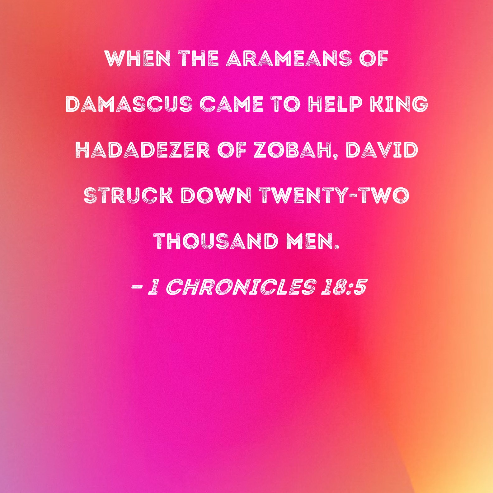 1 Chronicles 18:5 When the Arameans of Damascus came to help King Hadadezer of Zobah, David struck down twenty-two thousand men.
