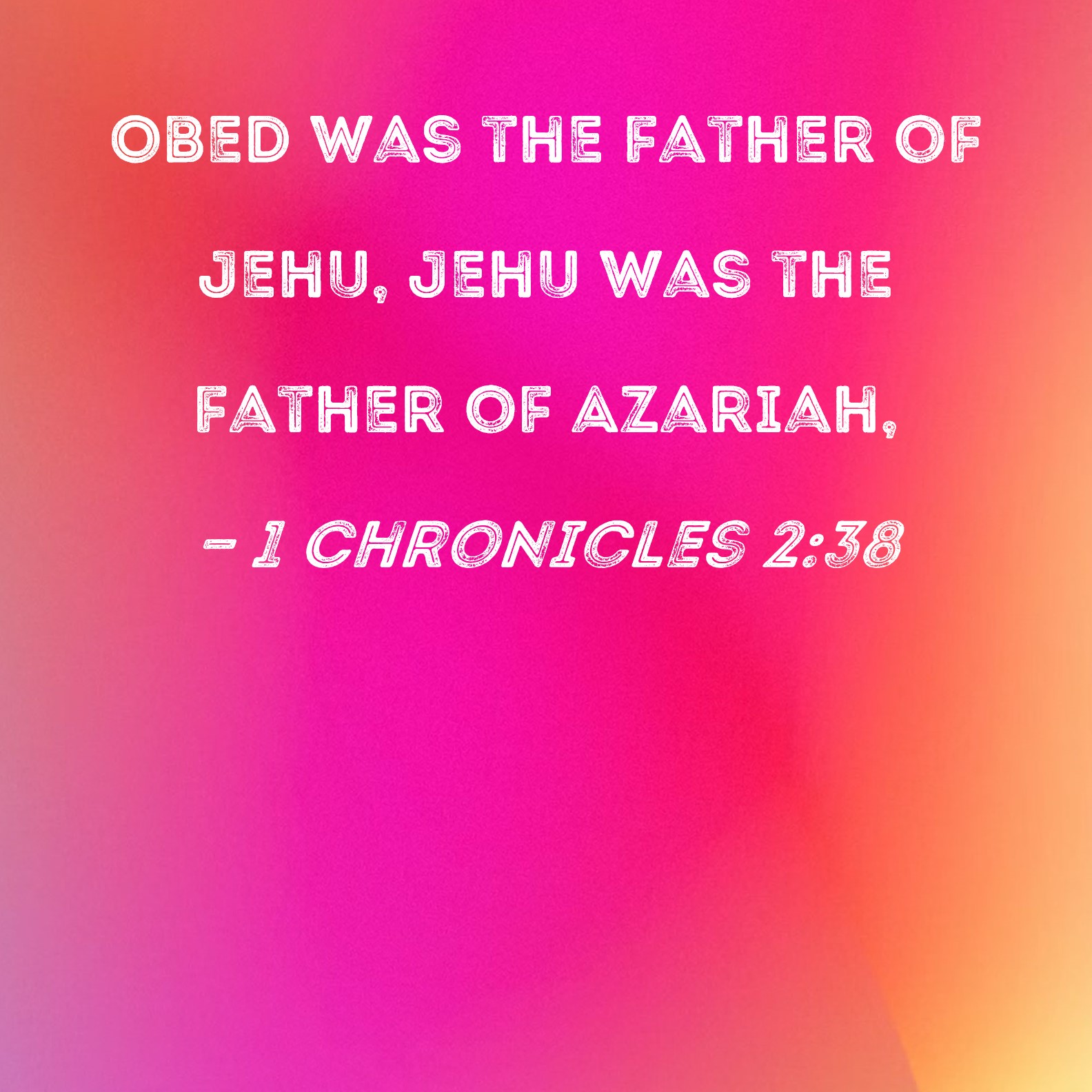 1 Chronicles 2:38 Obed was the father of Jehu, Jehu was the father of Azariah,