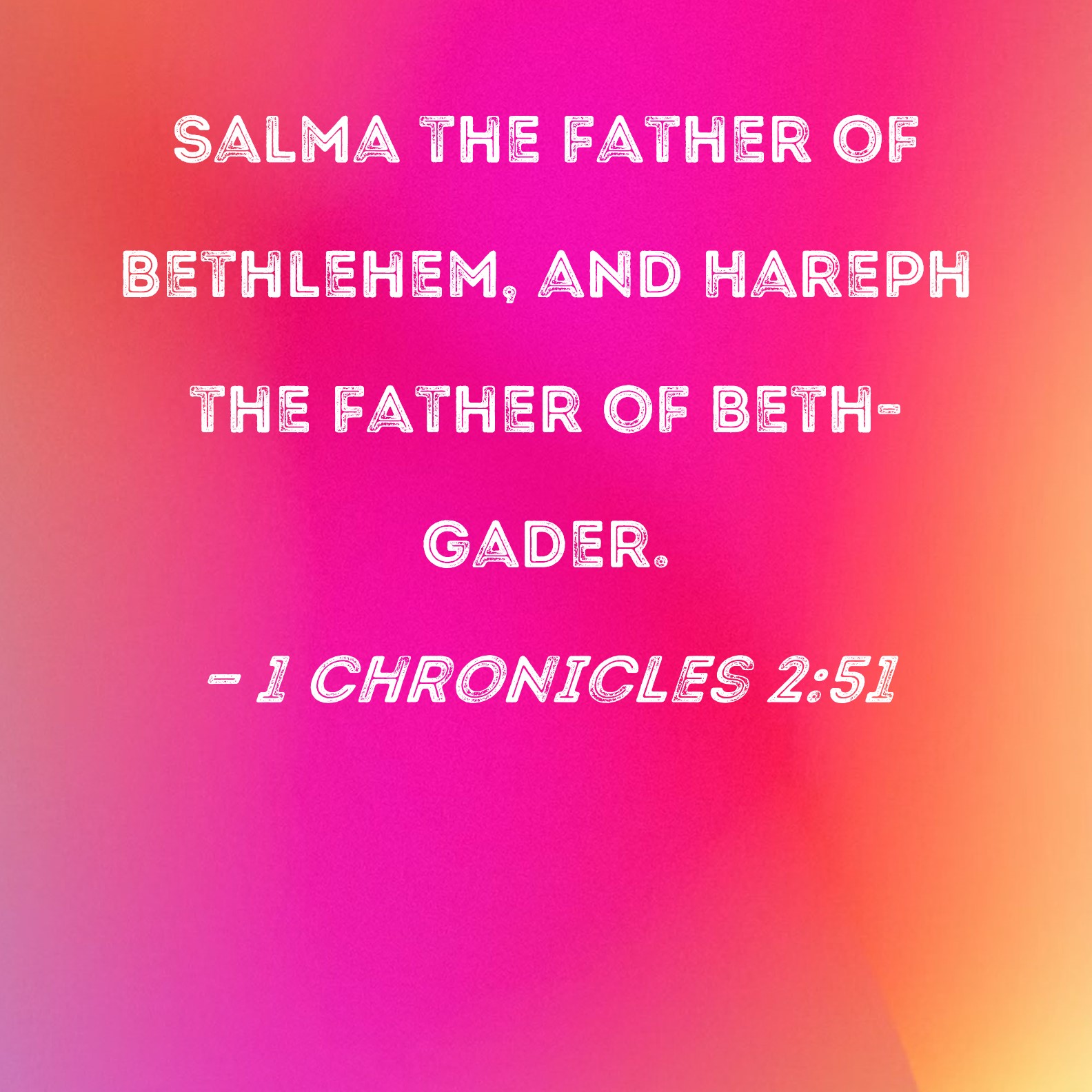 1 Chronicles 2:51 Salma the father of Bethlehem, and Hareph the father of Beth-gader.
