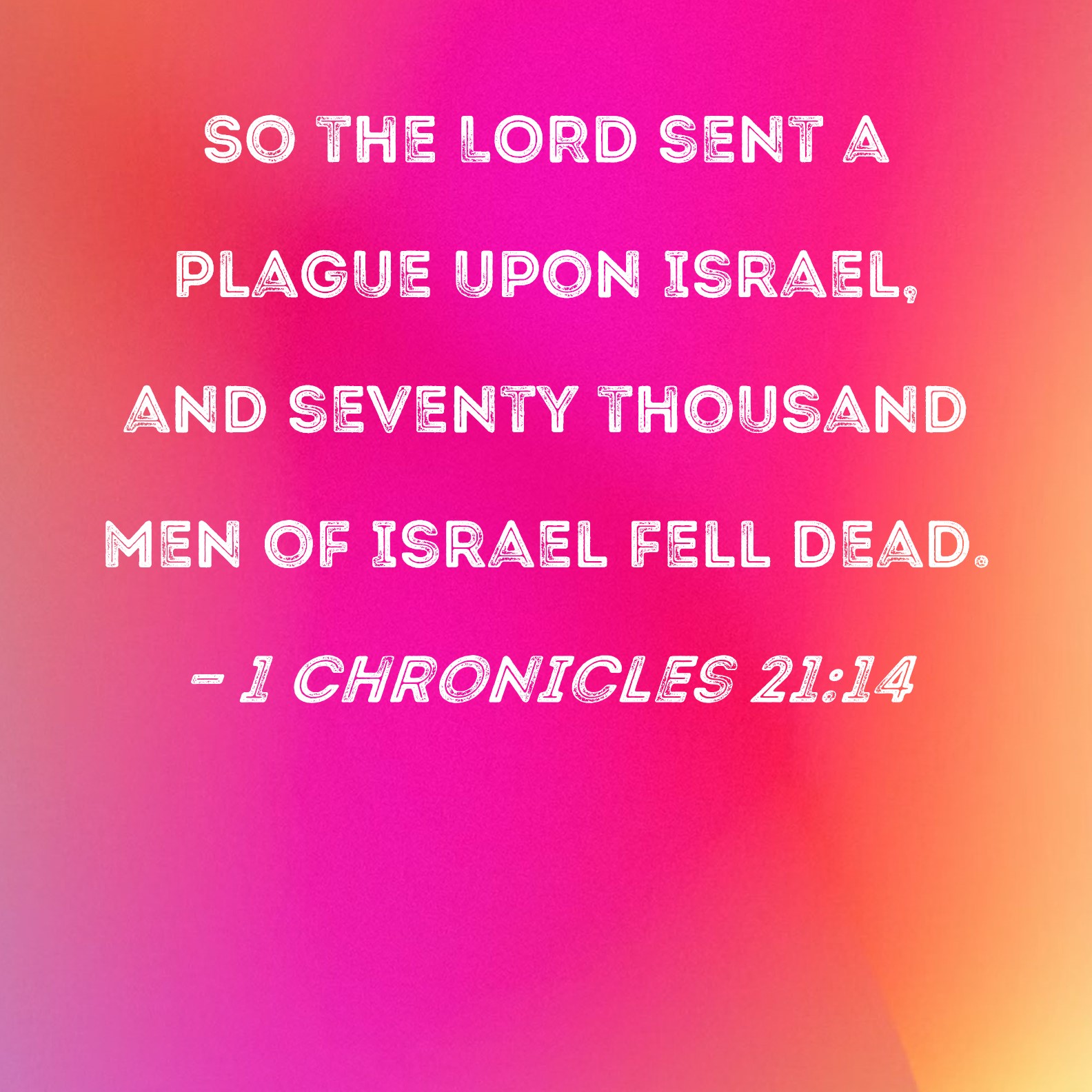 1 Chronicles 21:14 So the LORD sent a plague upon Israel, and seventy thousand men of Israel fell dead.