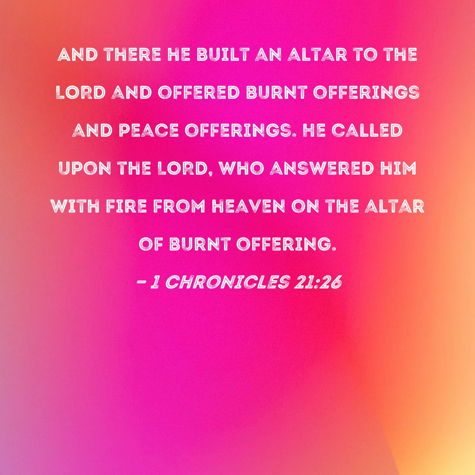 1 Chronicles 21:26 And there he built an altar to the LORD and offered burnt offerings and peace offerings. He called upon the LORD, who answered him with fire from heaven on the altar of burnt offering.