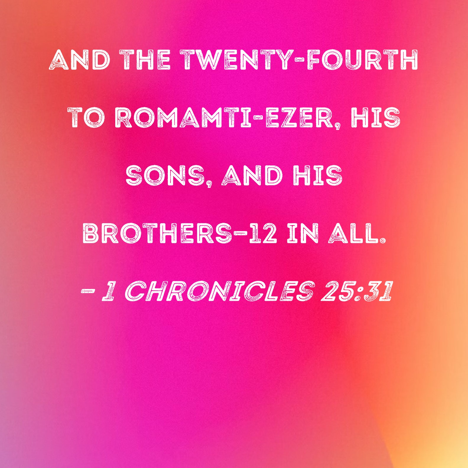 1 Chronicles 25:31 and the twenty-fourth to Romamti-ezer, his sons, and his brothers--12 in all.
