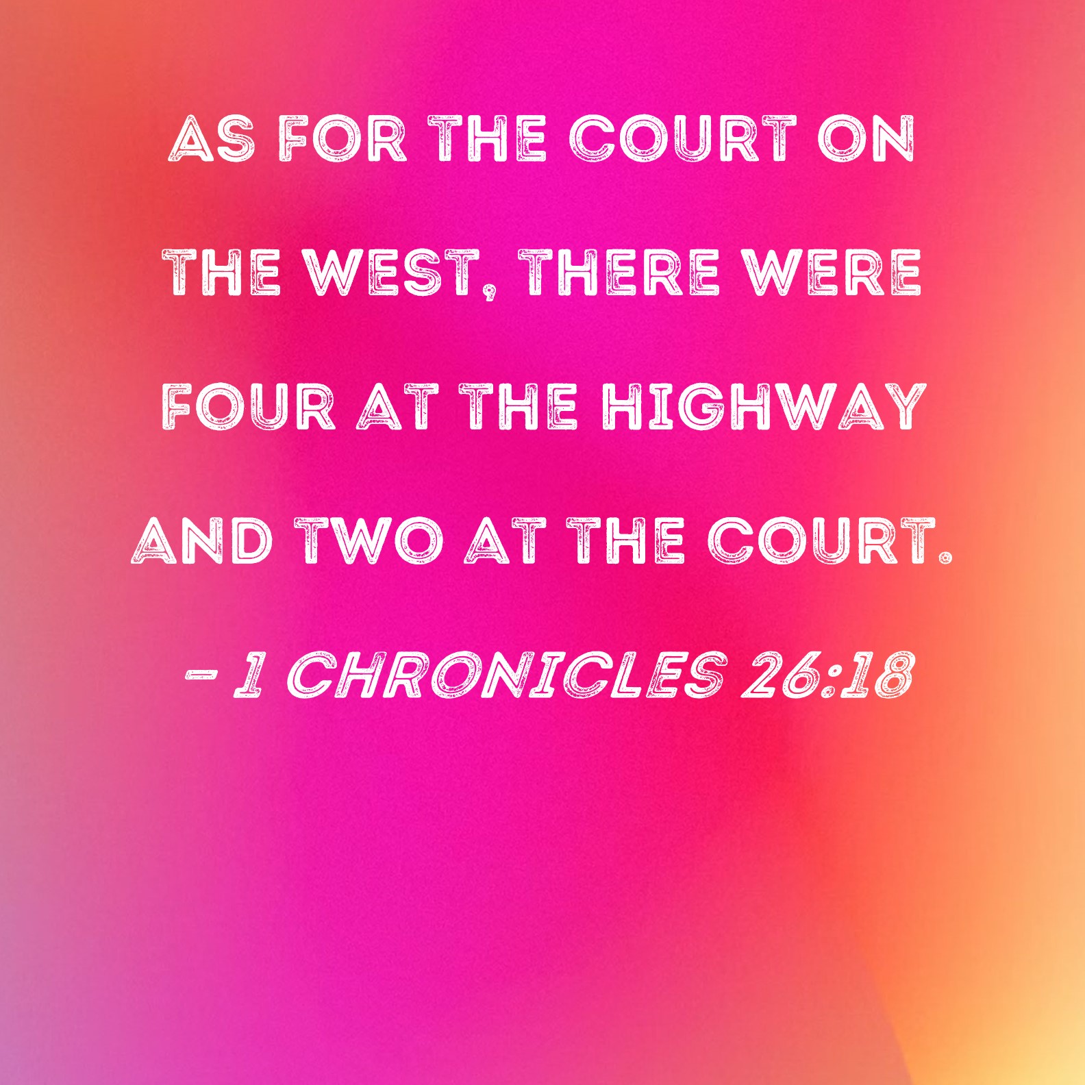1 Chronicles 26:18 As for the court on the west, there were four at the highway and two at the court.