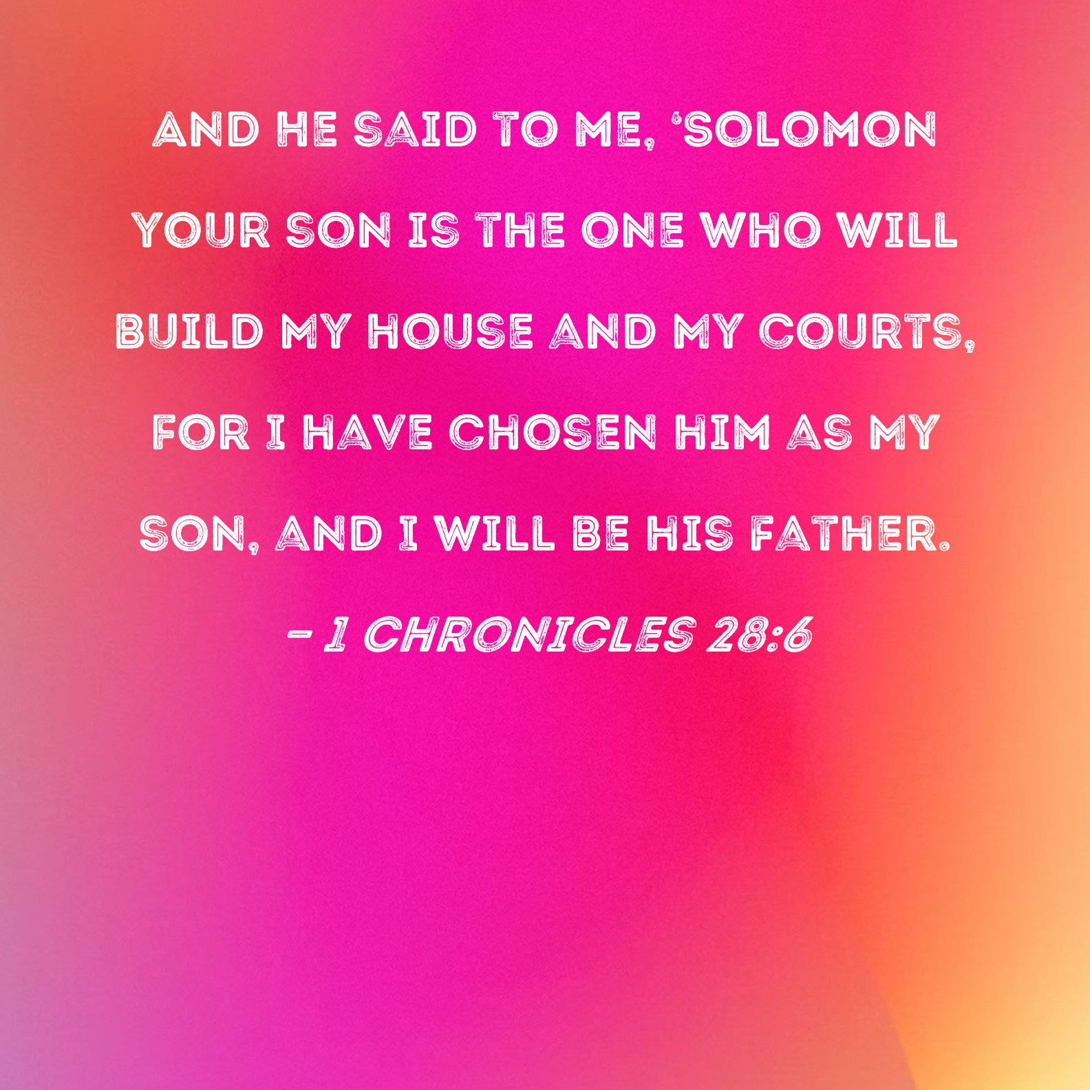 1 Chronicles 28:6 And He said to me, 'Solomon your son is the one who will build My house and My courts, for I have chosen him as My son, and I will be his Father.