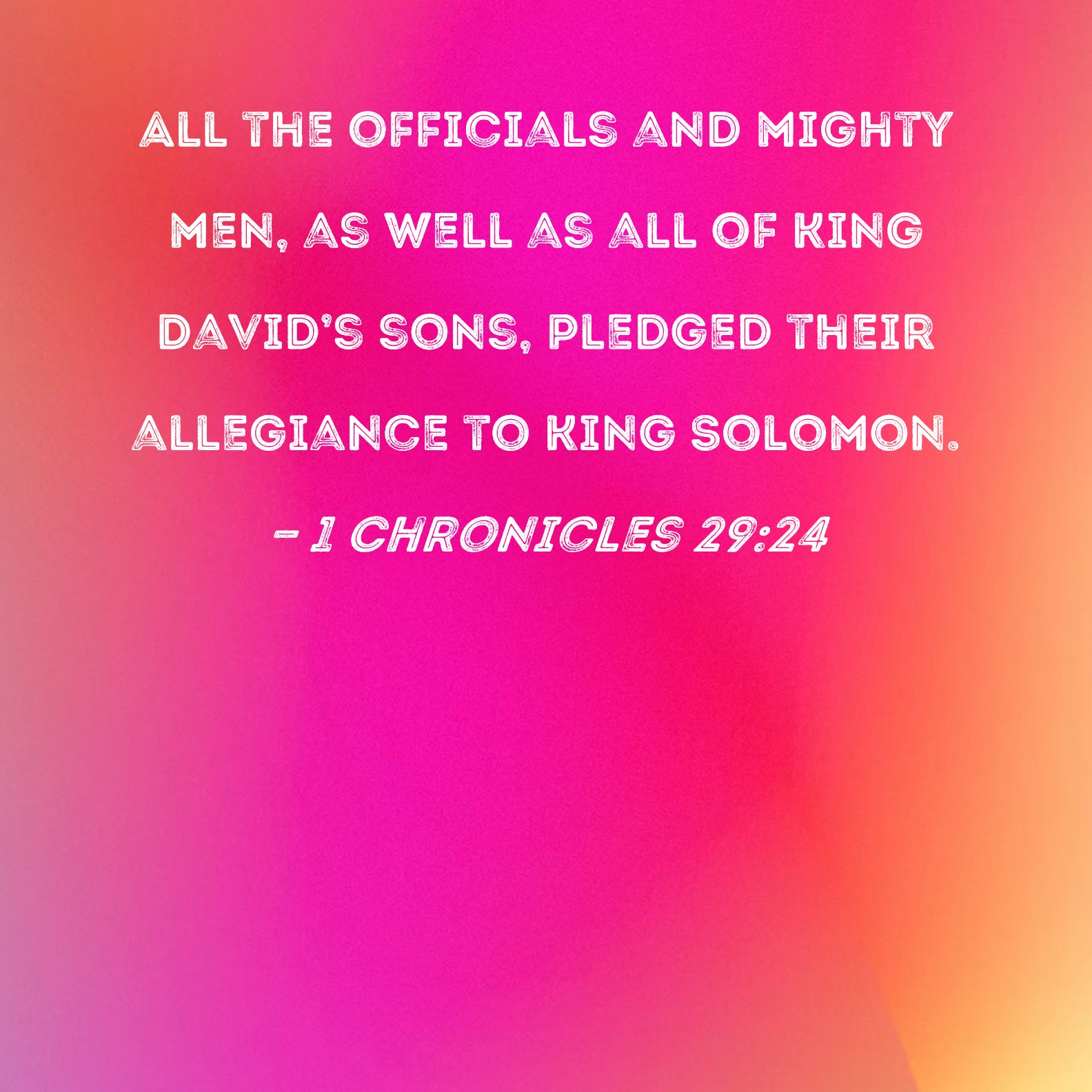 1 Chronicles 29:24 All the officials and mighty men, as well as all of King David's sons, pledged their allegiance to King Solomon.