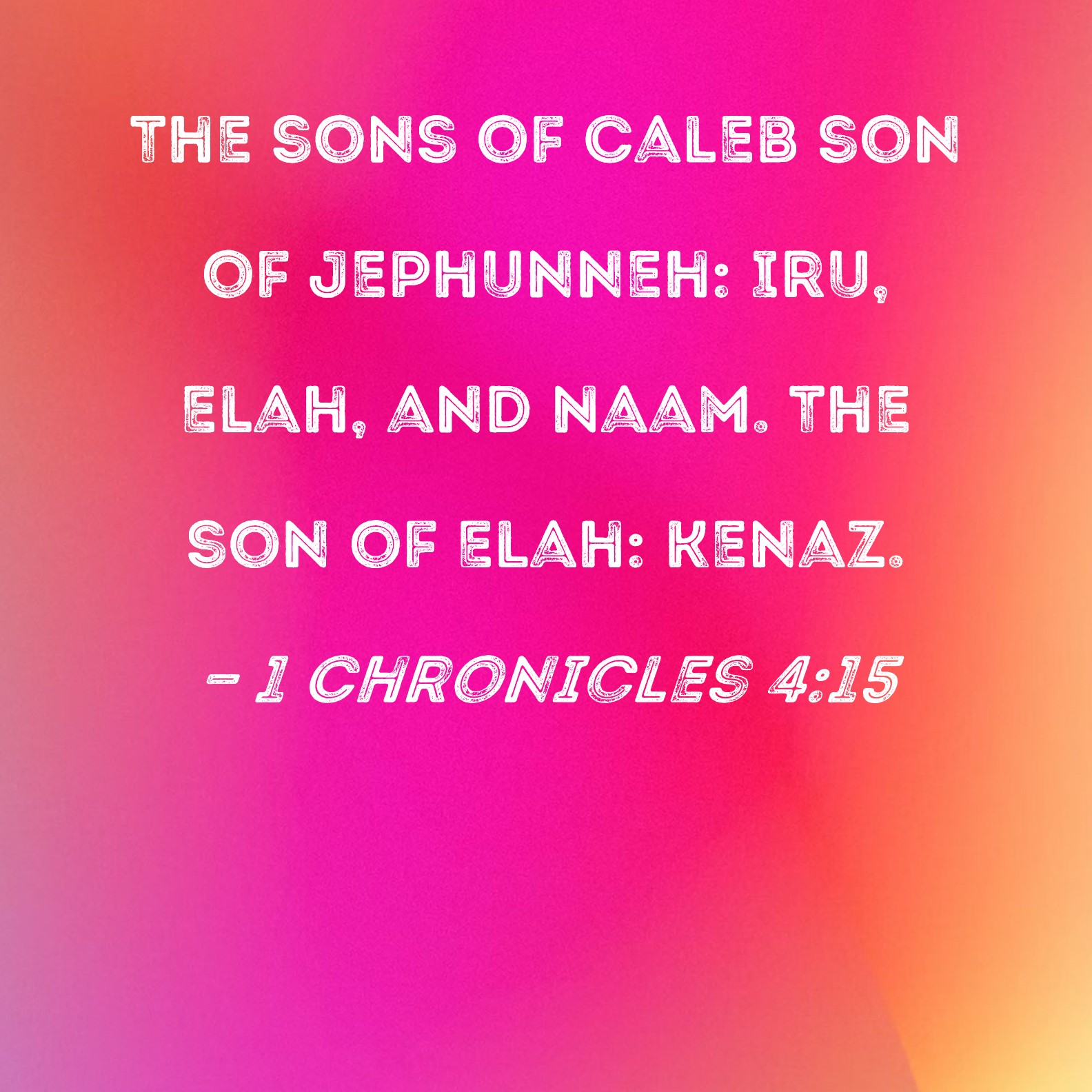 1 Chronicles 4:15 The sons of Caleb son of Jephunneh: Iru, Elah, and Naam. The son of Elah: Kenaz.