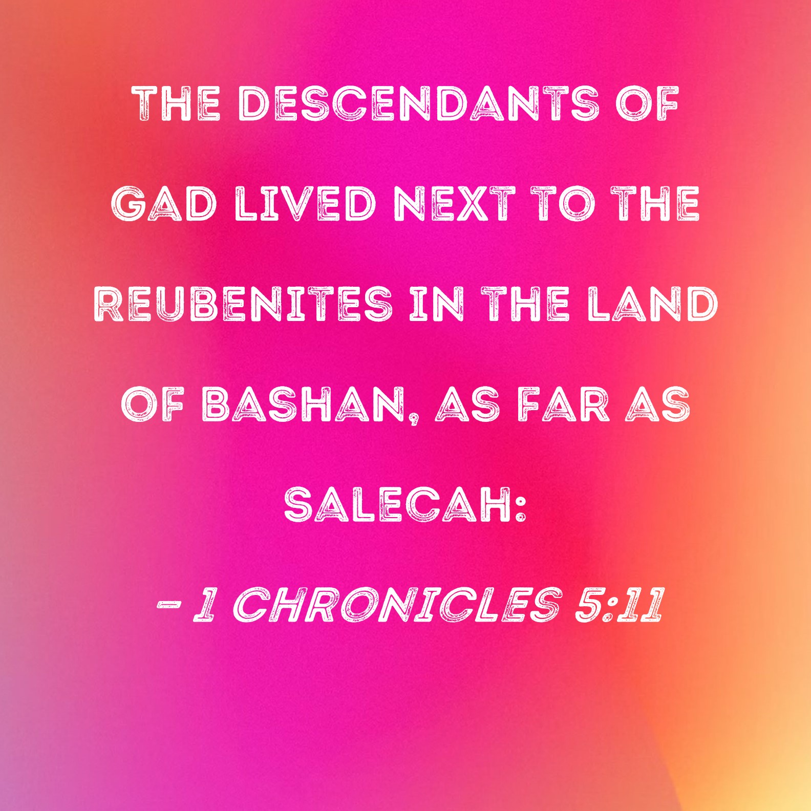 1 Chronicles 5:11 The descendants of Gad lived next to the Reubenites in the land of Bashan, as far as Salecah: