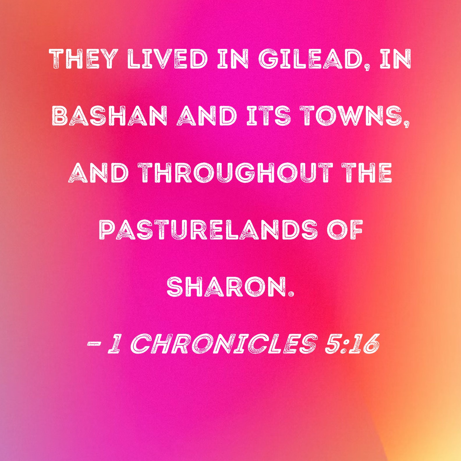 1 Chronicles 5:16 They lived in Gilead, in Bashan and its towns, and throughout the pasturelands of Sharon.