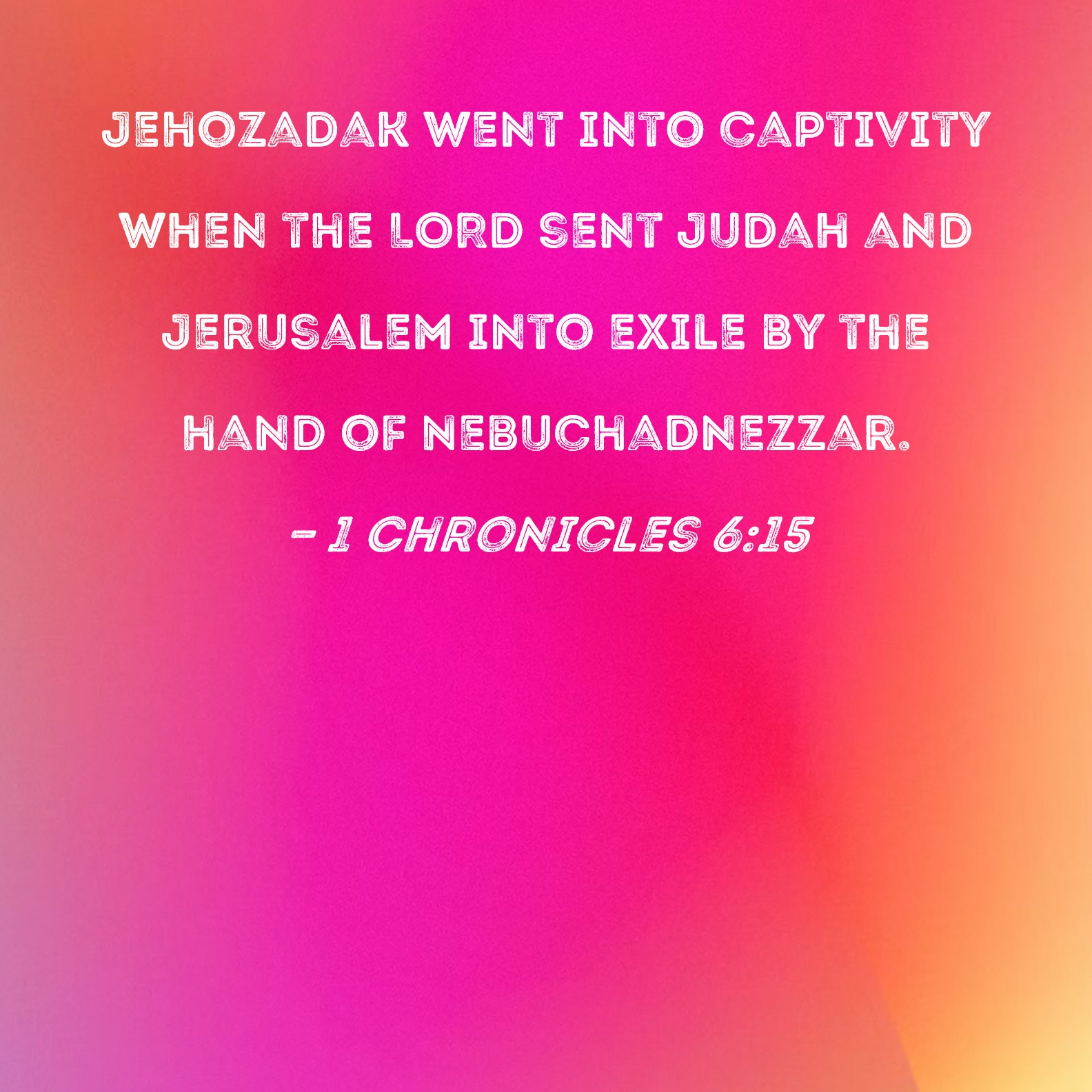 1 Chronicles 6:15 Jehozadak went into captivity when the LORD sent Judah and Jerusalem into exile by the hand of Nebuchadnezzar.