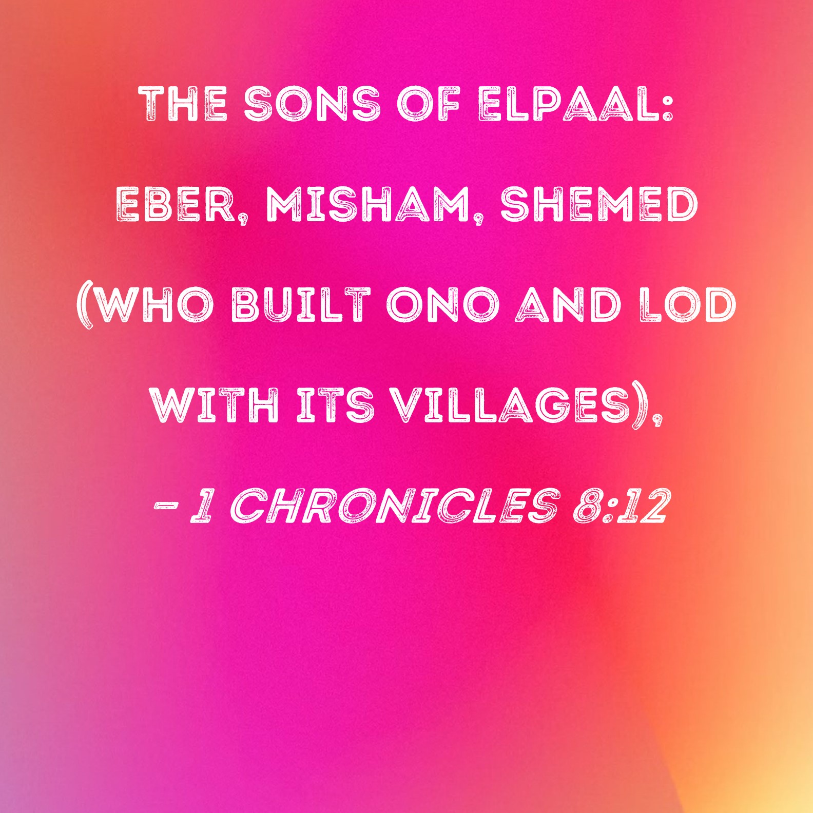 1 Chronicles 8:12 The sons of Elpaal: Eber, Misham, Shemed (who built Ono and Lod with its villages),