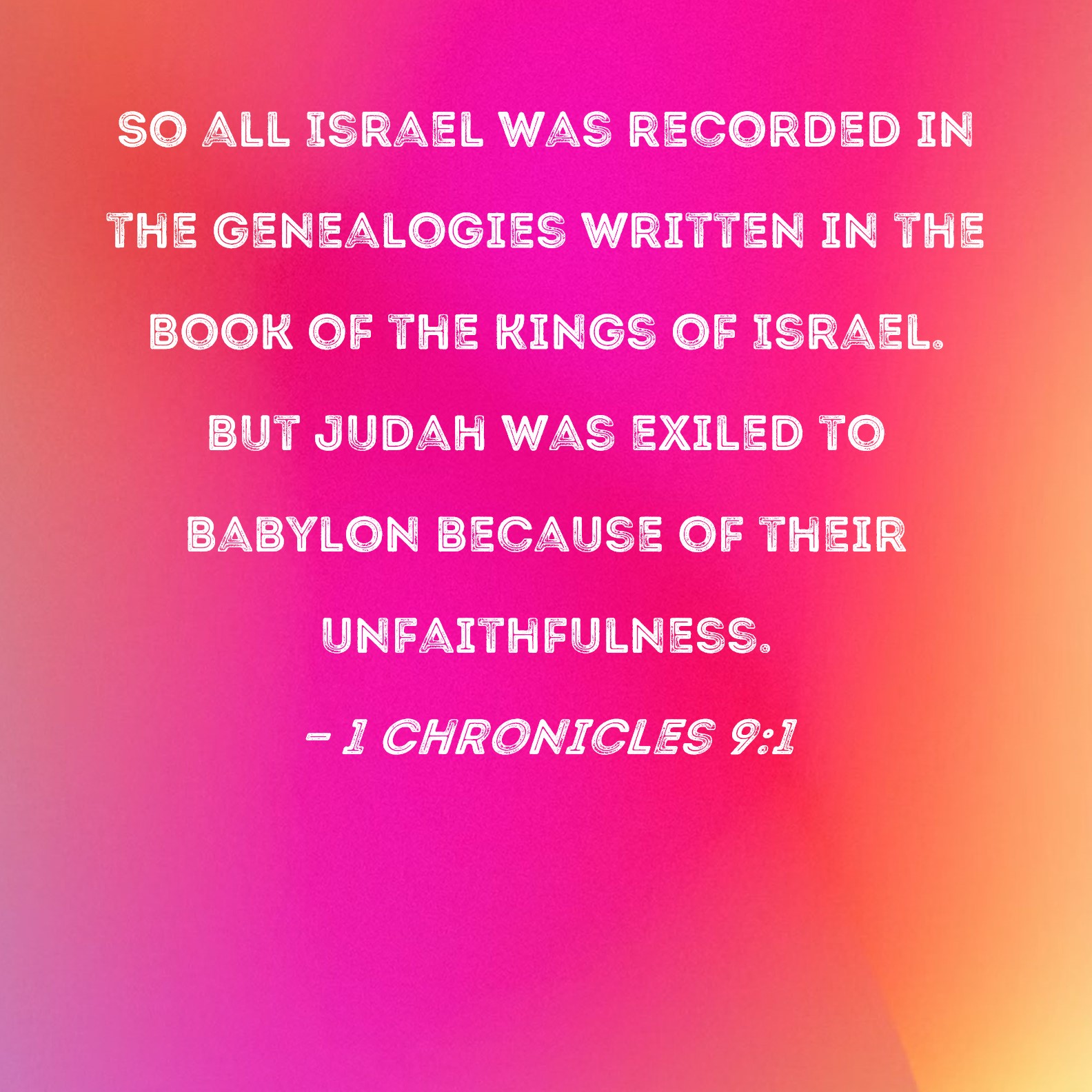 1 Chronicles 9:1 So all Israel was recorded in the genealogies written in the Book of the Kings of Israel. But Judah was exiled to Babylon because of their unfaithfulness.