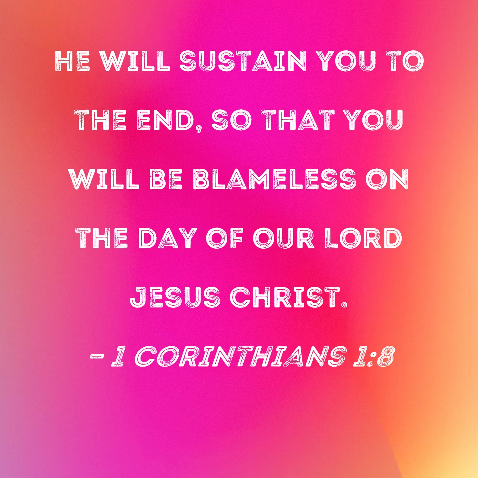 1 Corinthians 1:8 He will sustain you to the end, so that you will be blameless on the day of our Lord Jesus Christ.