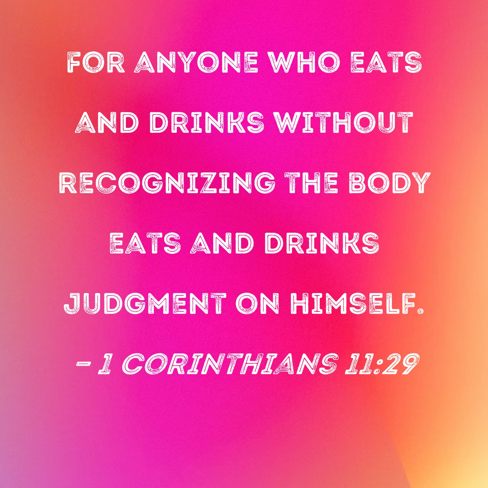 1 Corinthians 11:29 For anyone who eats and drinks without recognizing the body eats and drinks judgment on himself.