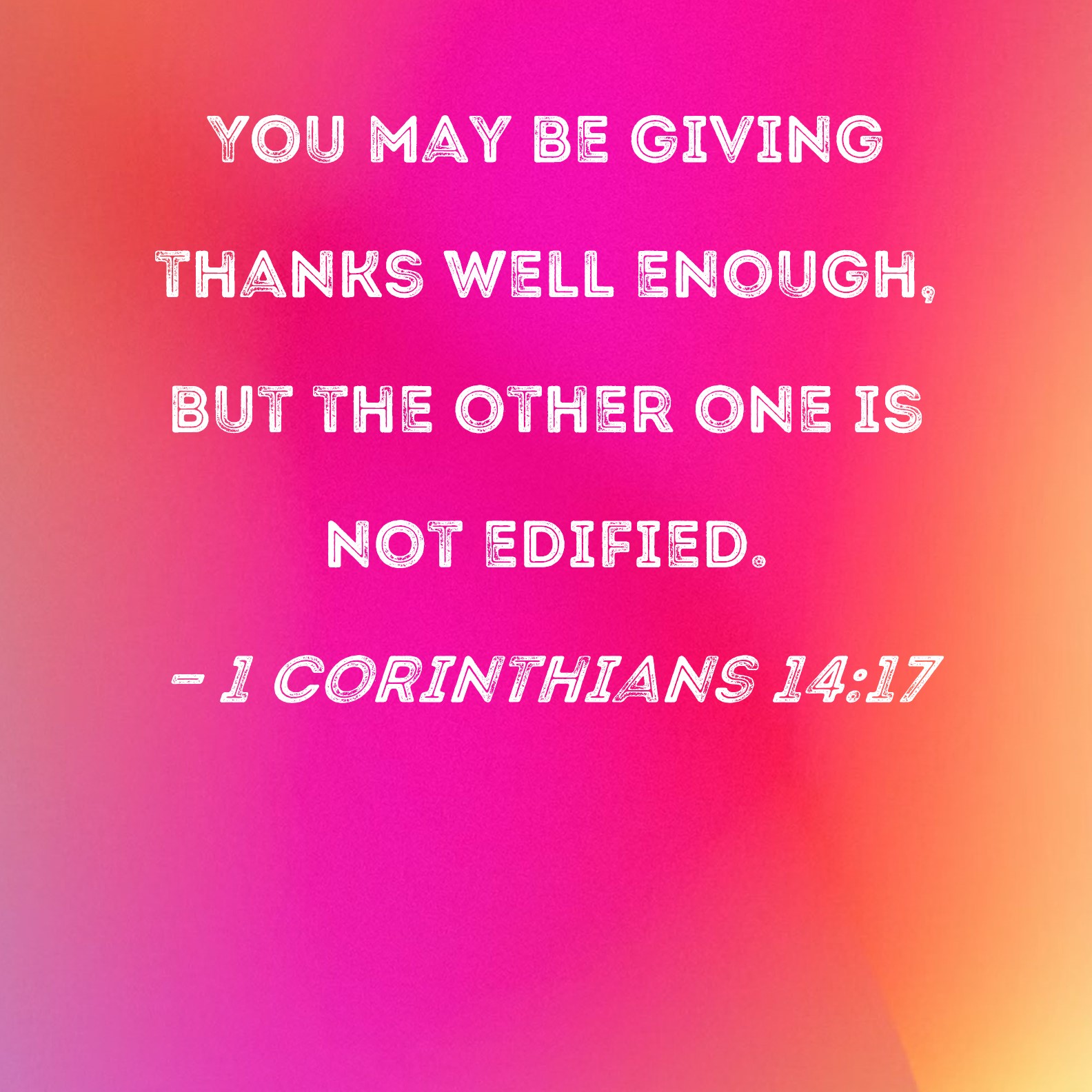 1 Corinthians 14:17 You may be giving thanks well enough, but the other one is not edified.