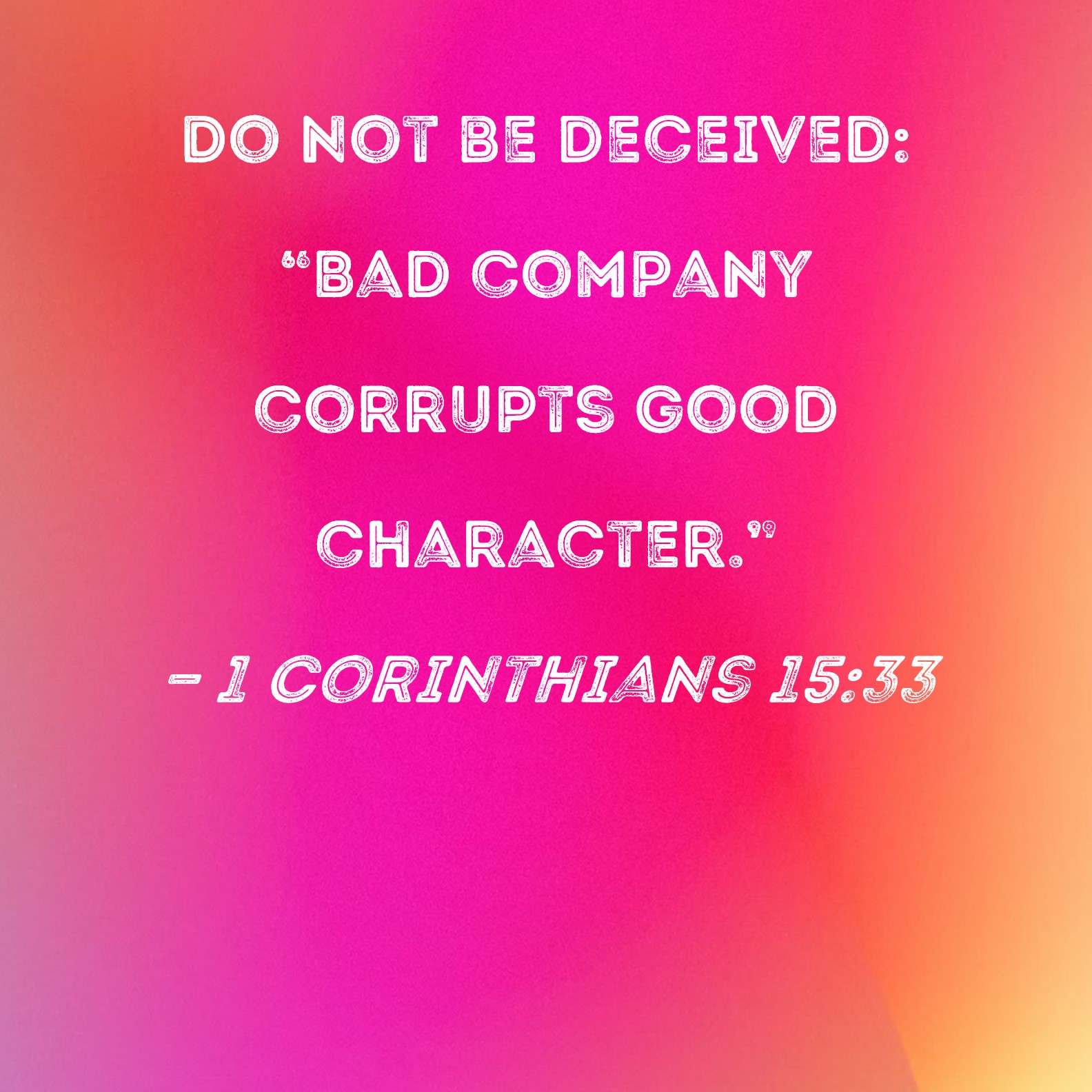 1 Corinthians 15:33 Do not be deceived: "Bad company corrupts good character."