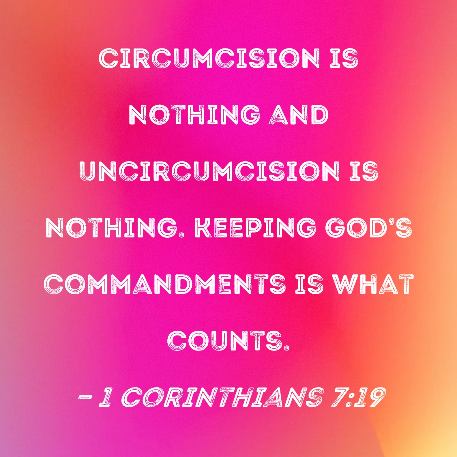 1 Corinthians 7:19 Circumcision is nothing and uncircumcision is nothing. Keeping God's commandments is what counts.