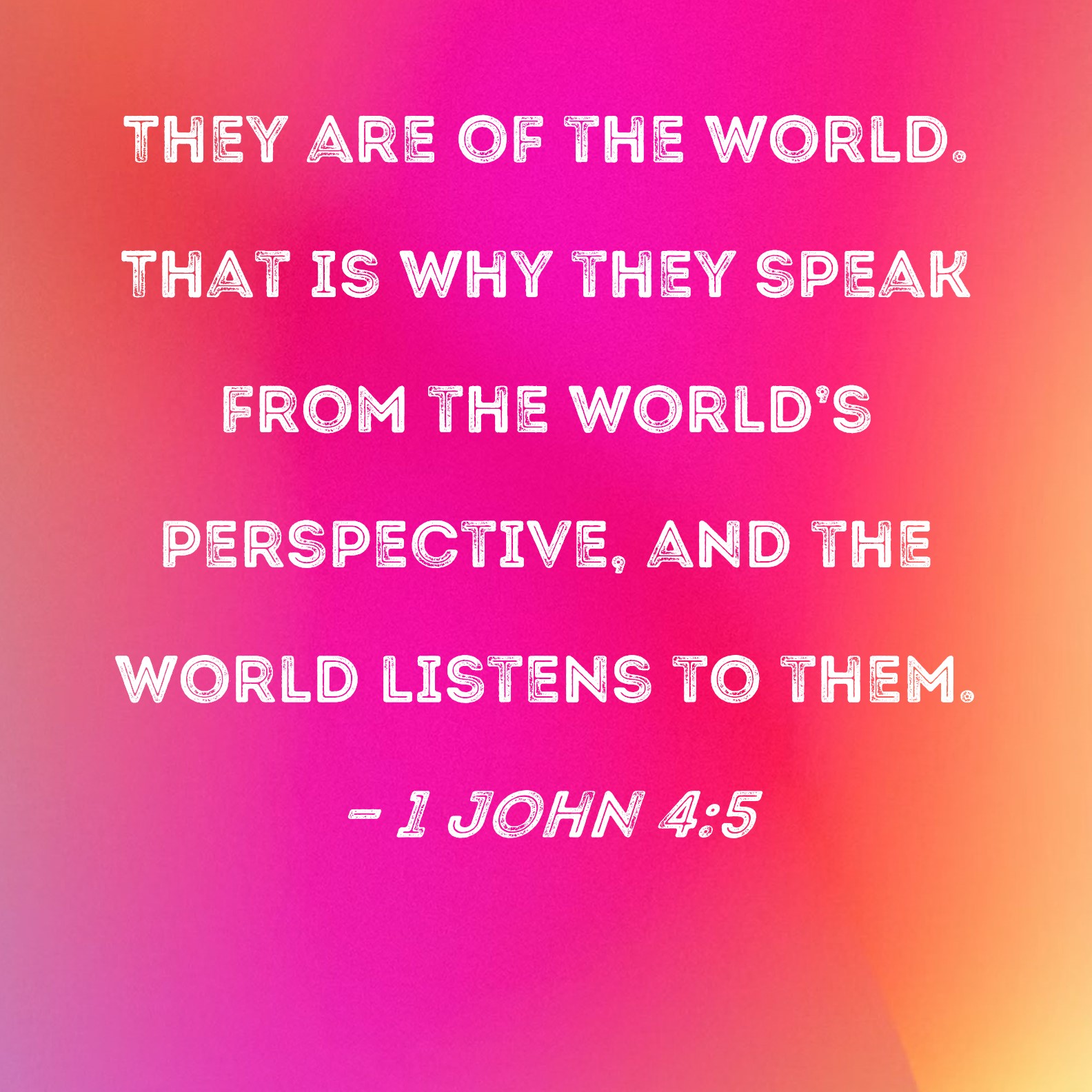1 John 4:5 They are of the world. That is why they speak from the world's perspective, and the world listens to them.
