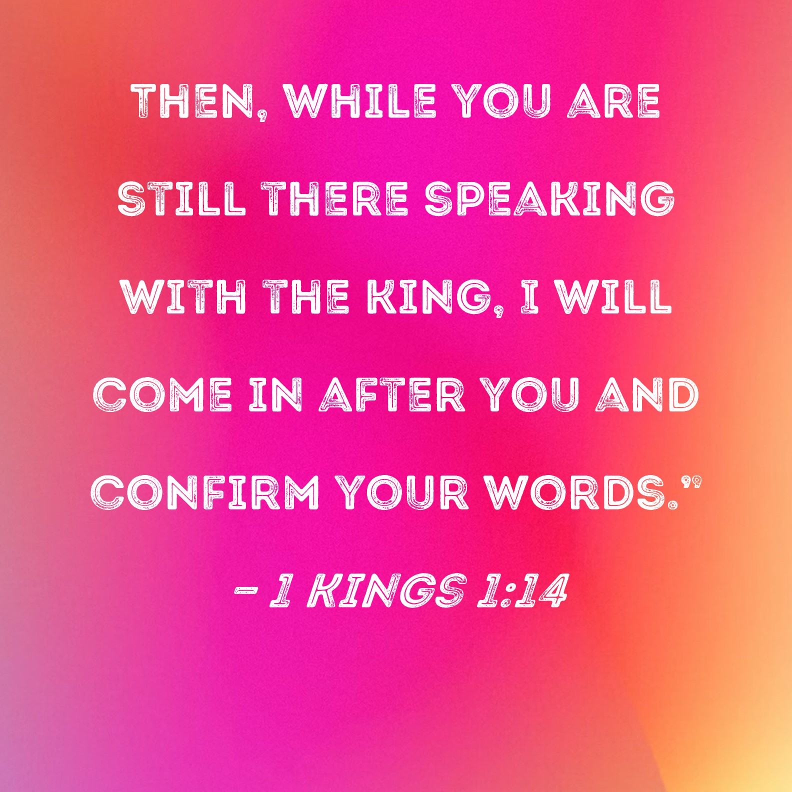 1 Kings 1:14 Then, while you are still there speaking with the king, I will come in after you and confirm your words."