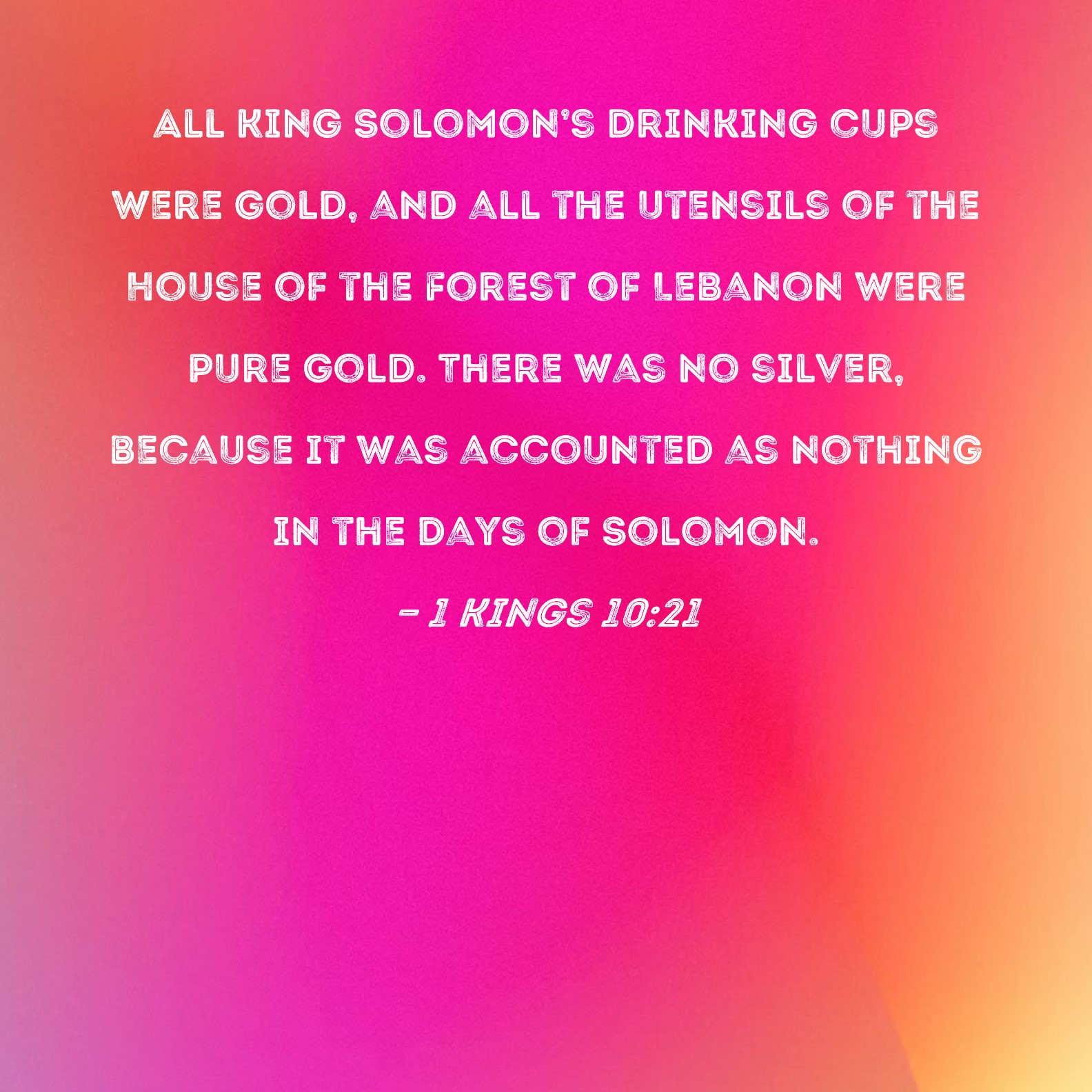 1 Kings 10:21 All King Solomon's drinking cups were gold, and all the utensils of the House of the Forest of Lebanon were pure gold. There was no silver, because it was accounted as nothing in the days of Solomon.