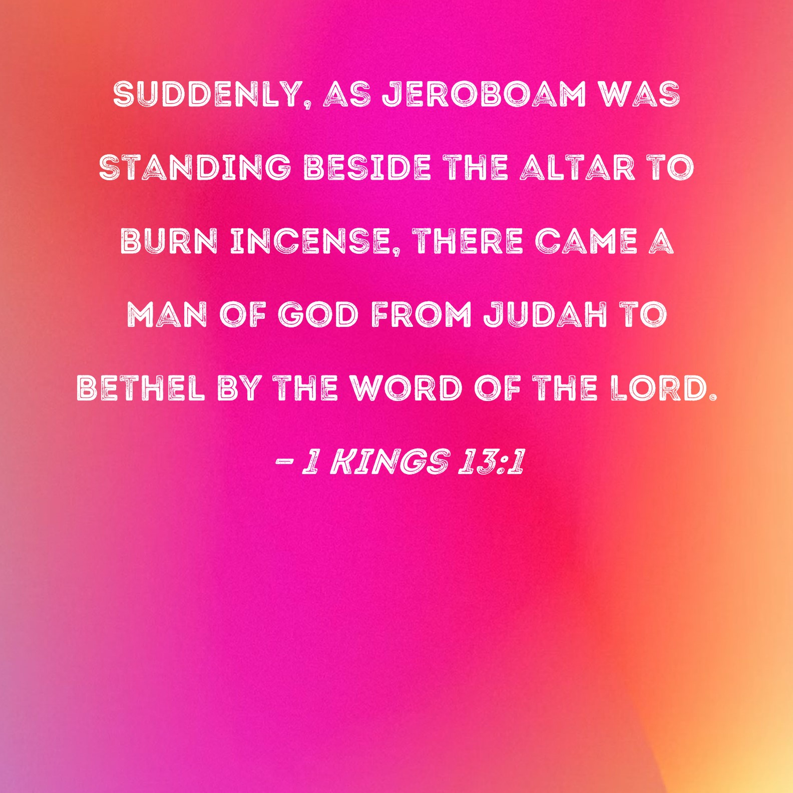 1 Kings 13:1 Suddenly, as Jeroboam was standing beside the altar to burn incense, there came a man of God from Judah to Bethel by the word of the LORD.