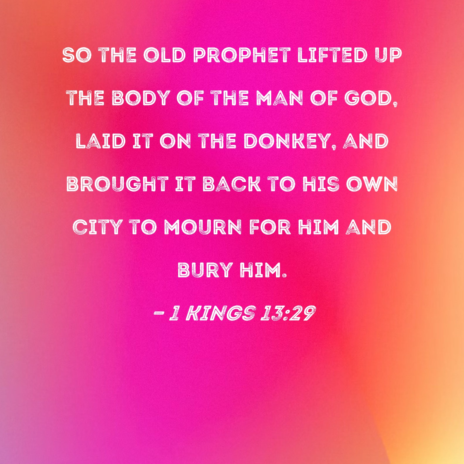 1 Kings 13:29 So the old prophet lifted up the body of the man of God, laid it on the donkey, and brought it back to his own city to mourn for him and bury him.