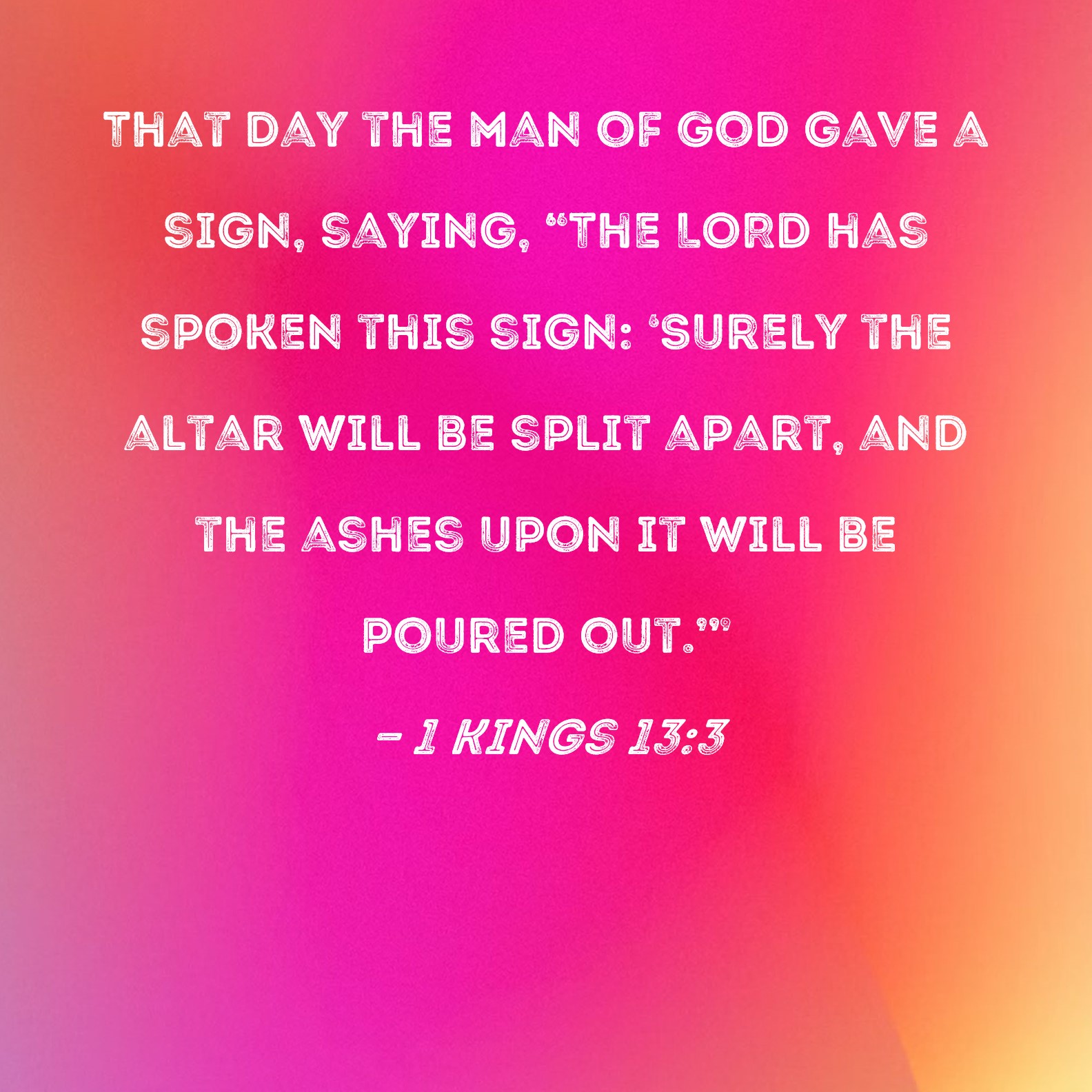 1 Kings 13:3 That day the man of God gave a sign, saying, "The LORD has spoken this sign: 'Surely the altar will be split apart, and the ashes upon it will be poured out.'"