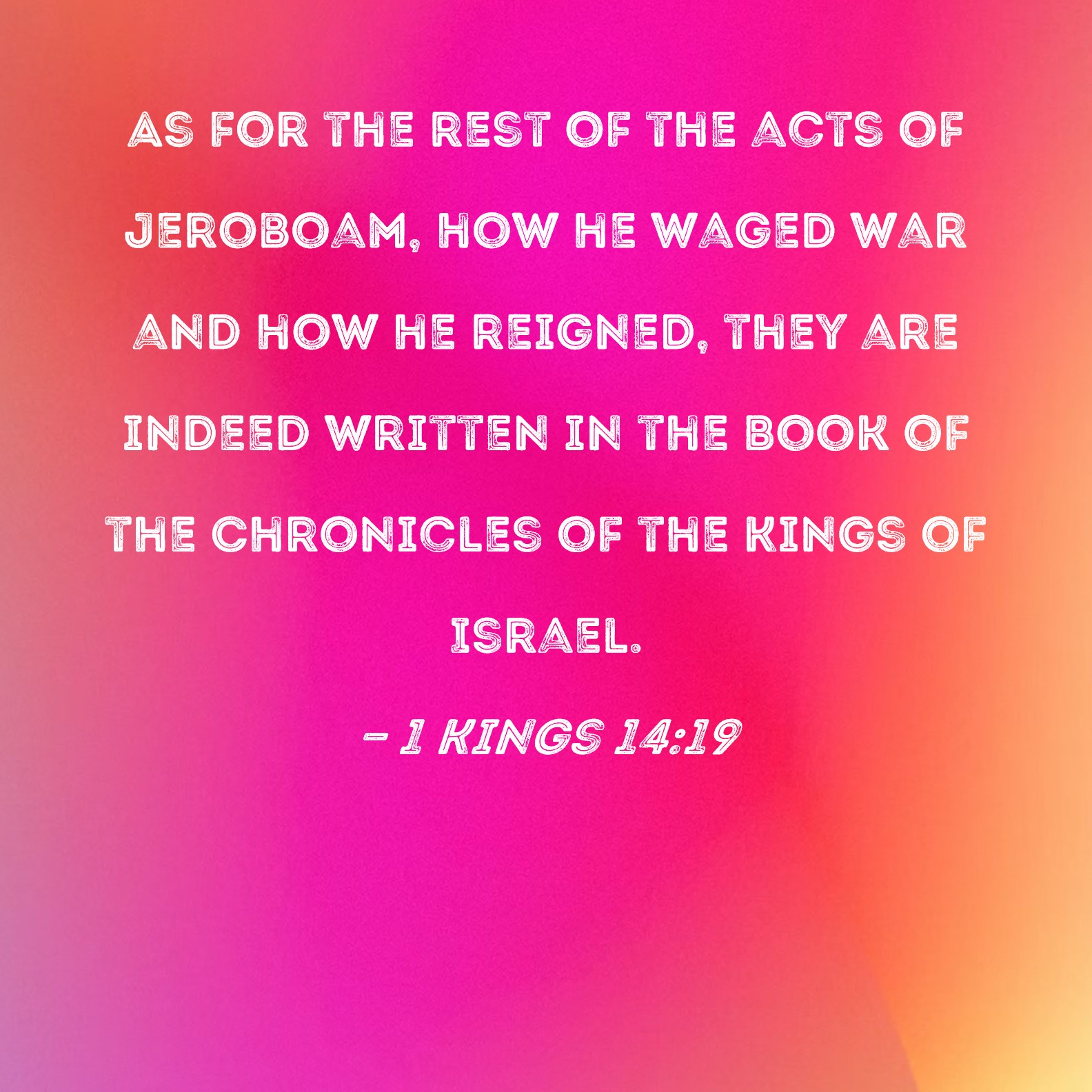1 Kings 14:19 As for the rest of the acts of Jeroboam, how he waged war and how he reigned, they are indeed written in the Book of the Chronicles of the Kings of Israel.