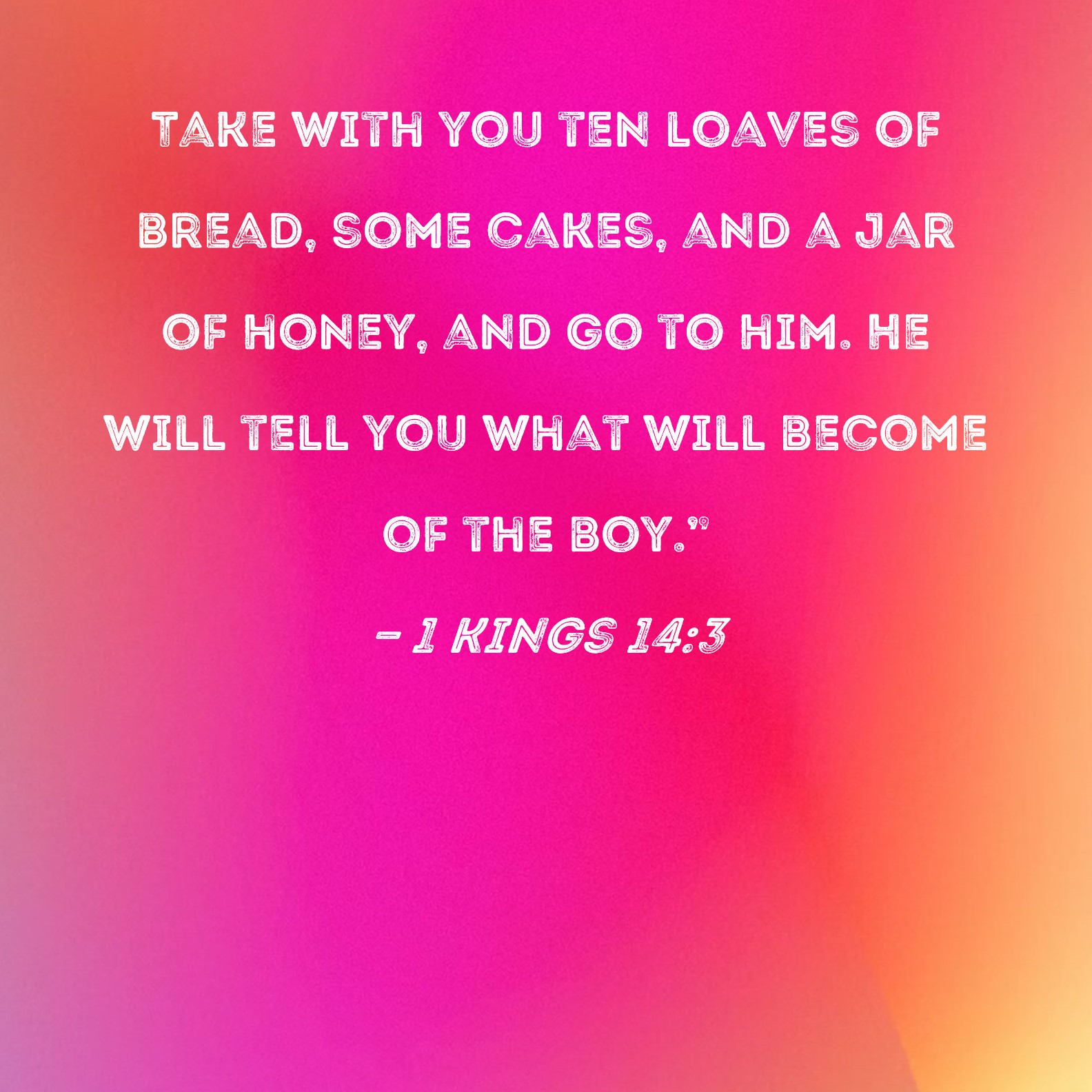1 Kings 14:3 Take with you ten loaves of bread, some cakes, and a jar of honey, and go to him. He will tell you what will become of the boy."