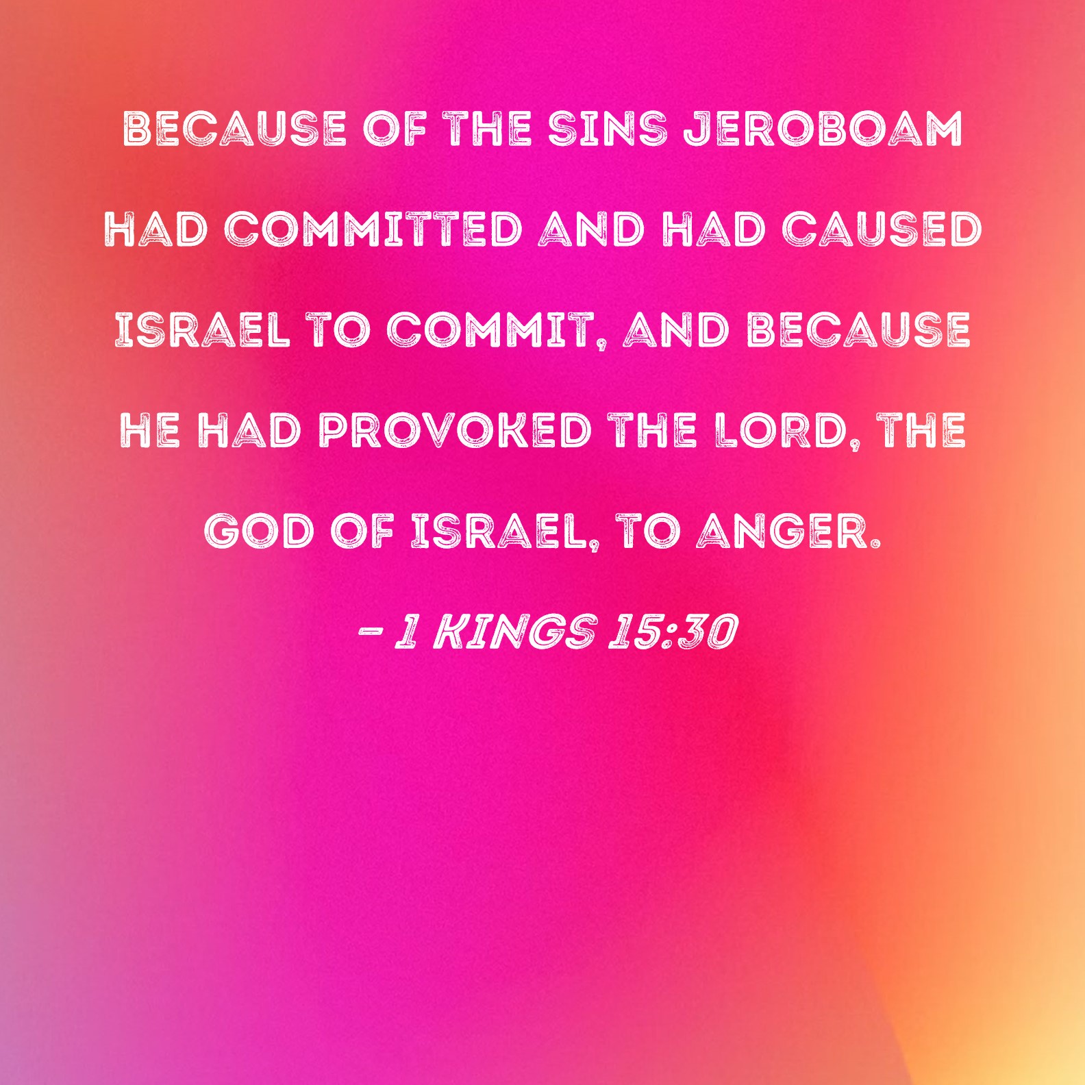 1 Kings 15:30 because of the sins Jeroboam had committed and had caused Israel to commit, and because he had provoked the LORD, the God of Israel, to anger.