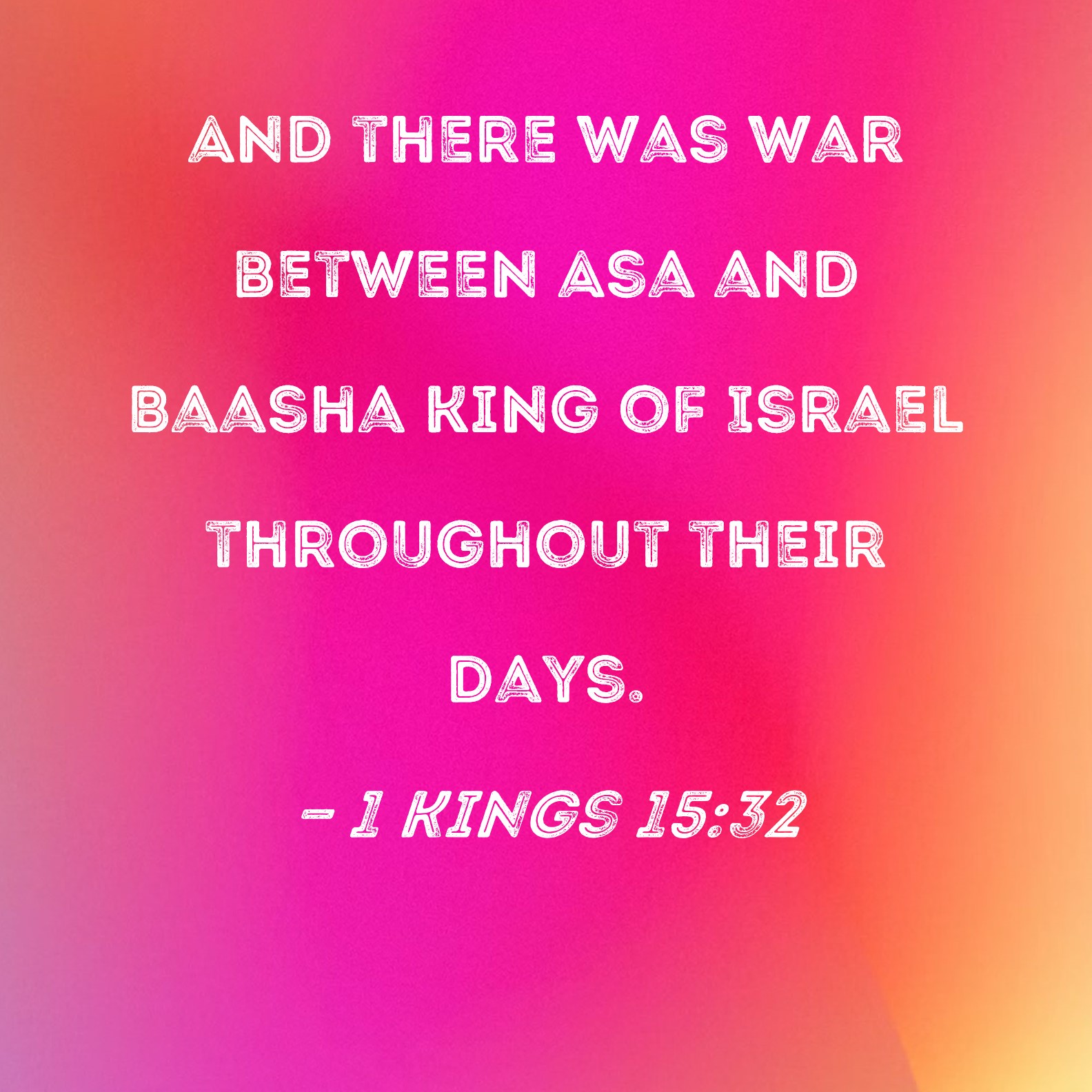 1 Kings 15:32 And there was war between Asa and Baasha king of Israel throughout their days.
