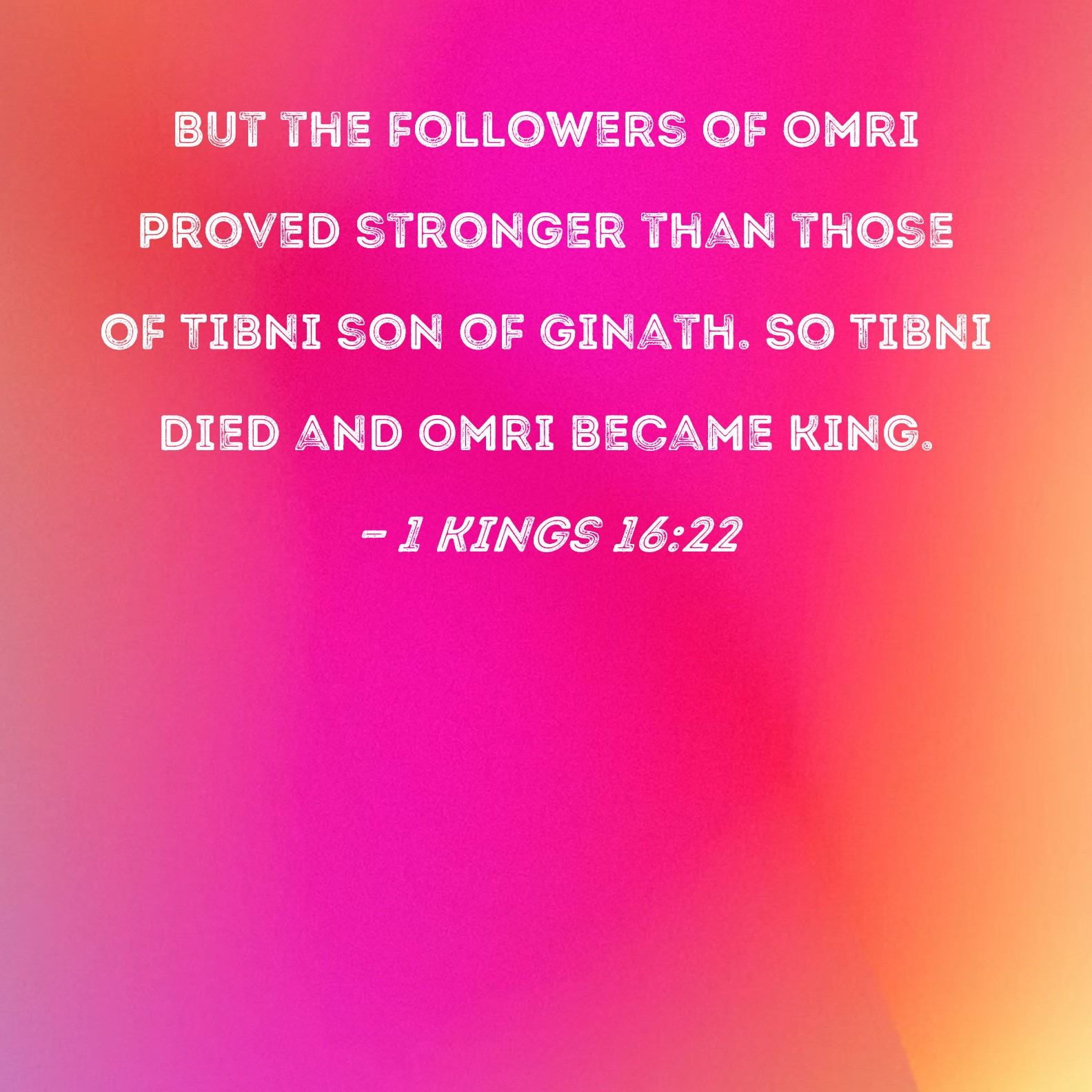 1 Kings 16:22 But the followers of Omri proved stronger than those of Tibni son of Ginath. So Tibni died and Omri became king.