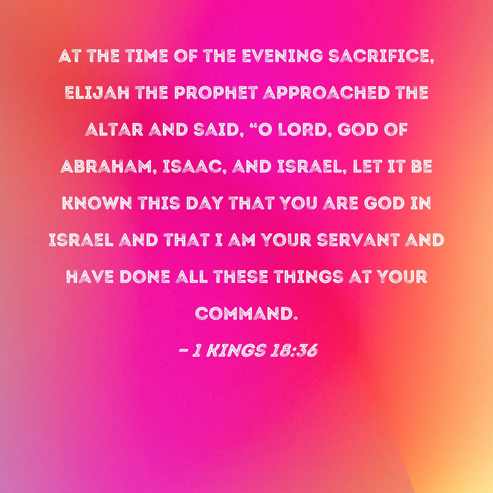 1 Kings 18:36 At the time of the evening sacrifice, Elijah the prophet approached the altar and said, "O LORD, God of Abraham, Isaac, and Israel, let it be known this day that You are God in Israel and that I am Your servant and have done all these things at Your command.
