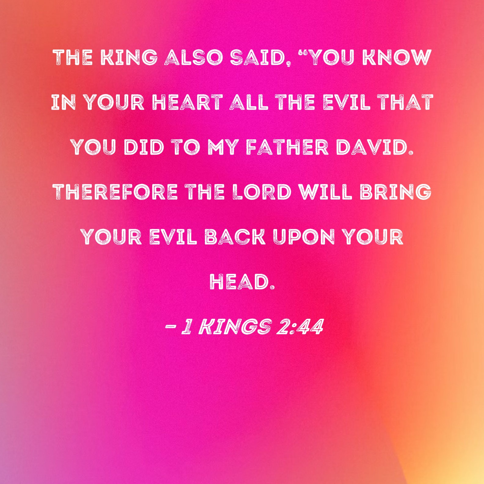 1 Kings 2:44 The king also said, "You know in your heart all the evil that you did to my father David. Therefore the LORD will bring your evil back upon your head.