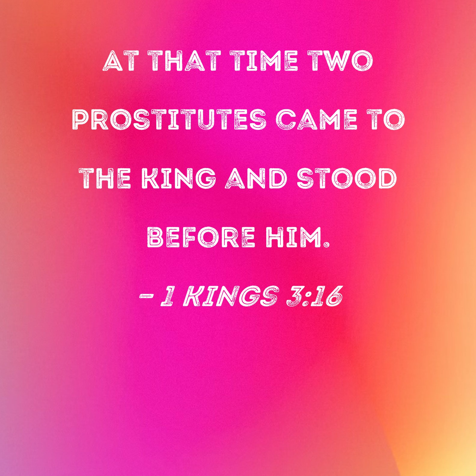 1 Kings 3:16 At that time two prostitutes came to the king and stood before him.